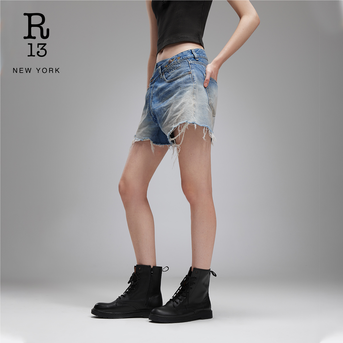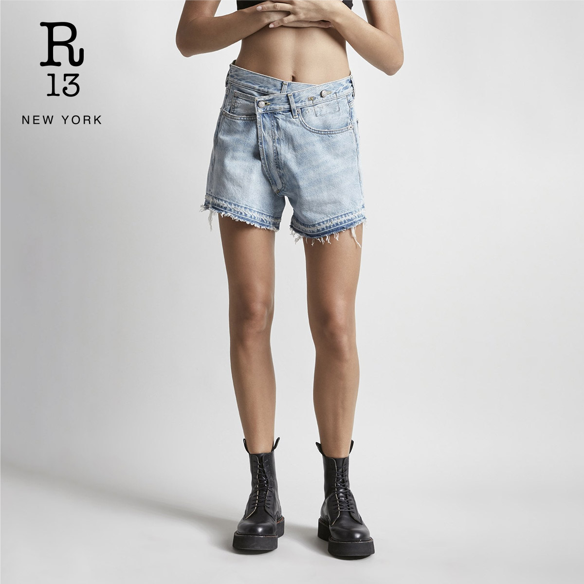 春夏系列 R13 CROSS OVER 交叉牛仔短裤 中腰复古美式 明星同款