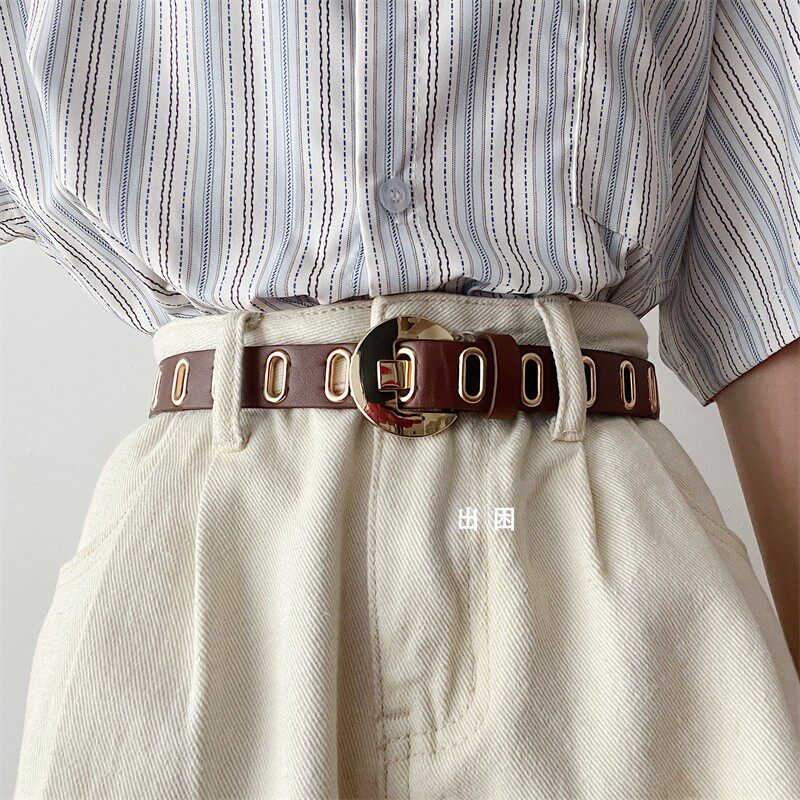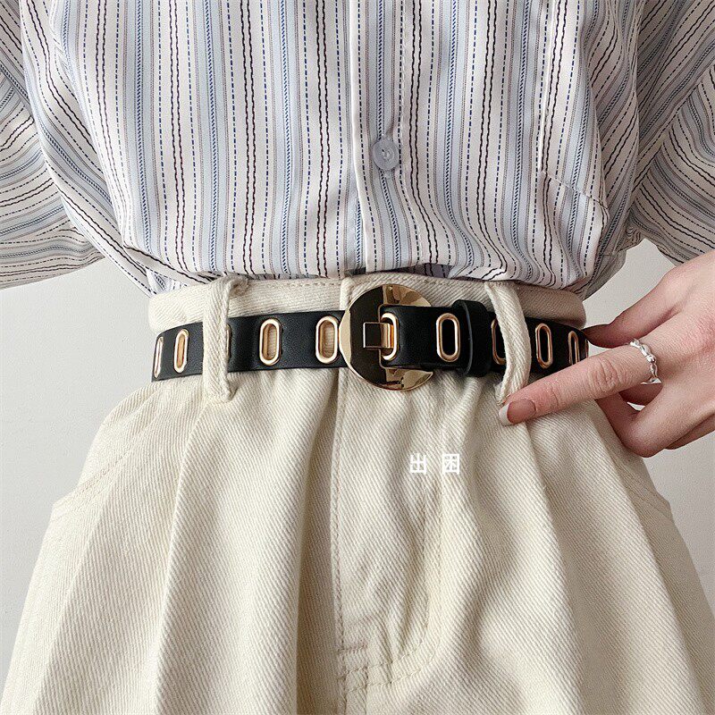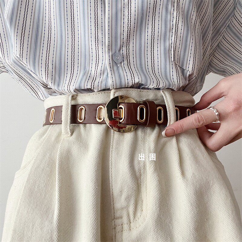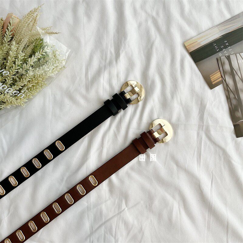 装 百搭配牛仔裤 饰腰带细 小众全孔免打孔皮带黑色女时尚 高级感新款