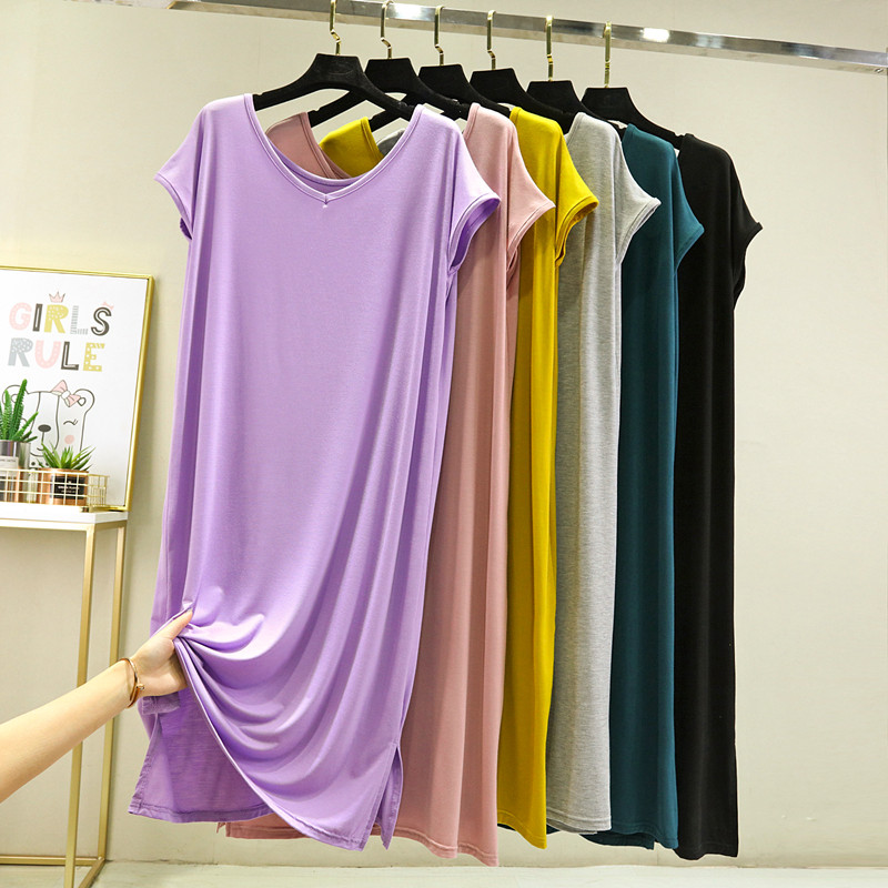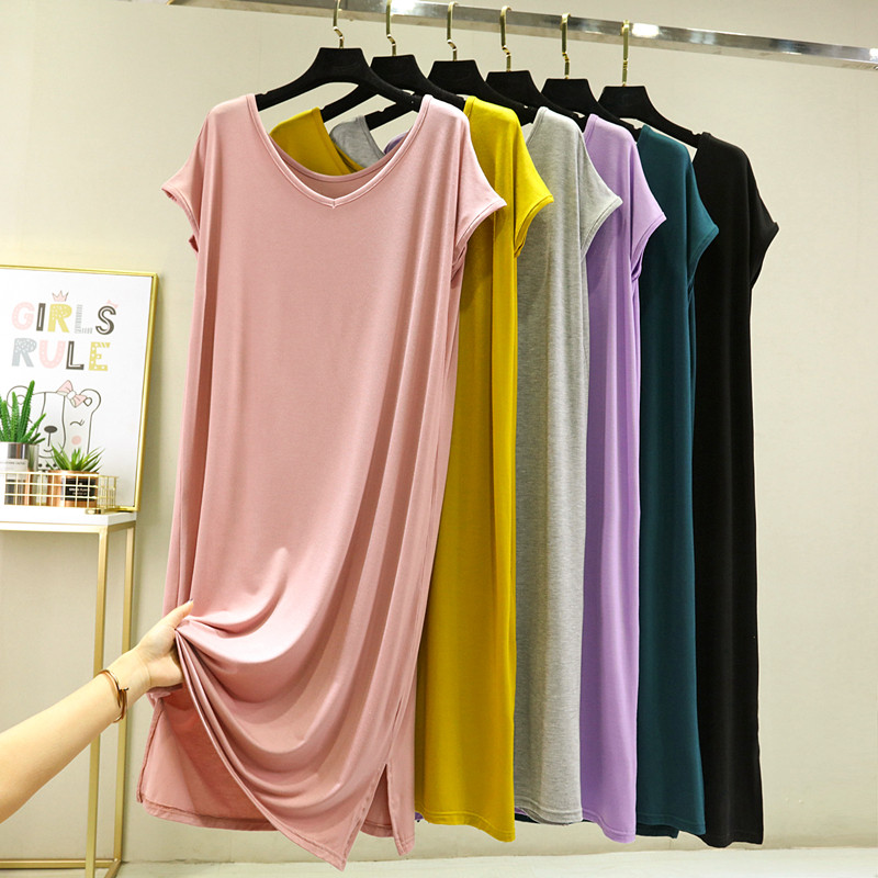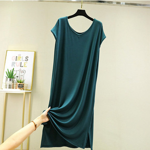 莫代尔背心裙女夏宽松纯色V领打底裙外穿大码 睡裙长裙 连衣裙薄款