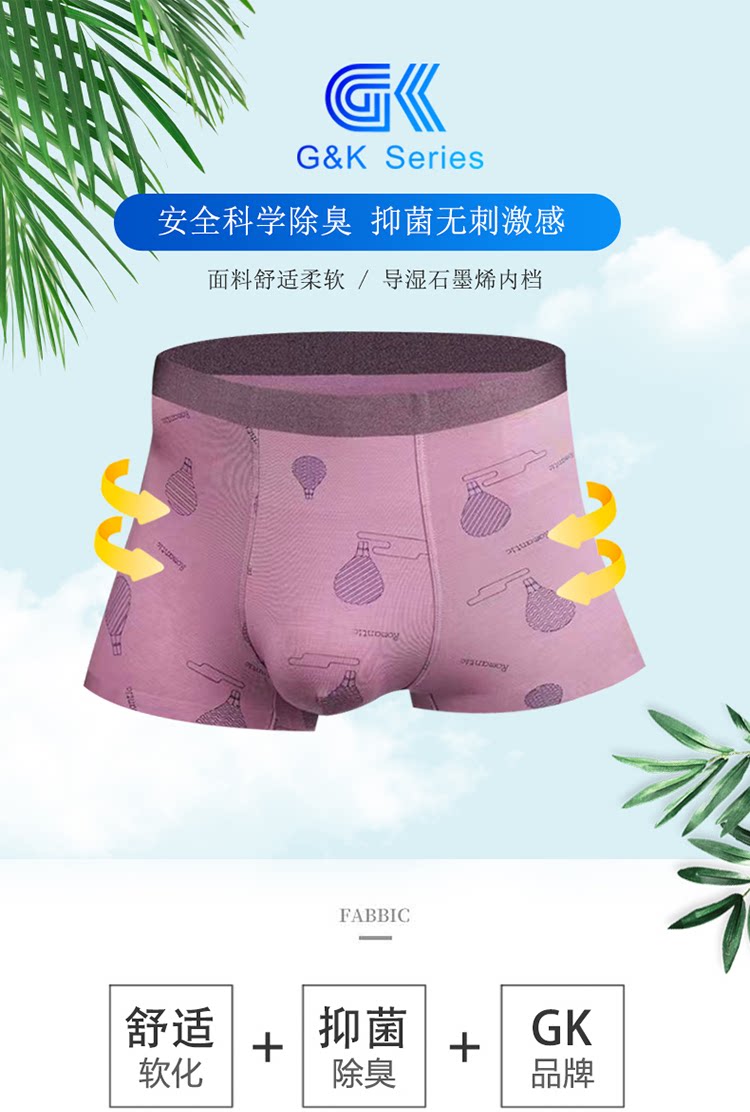 男裤 GK新款 平角打底裤 莫代尔男士 买1送1 石墨烯抗菌无痕男内裤
