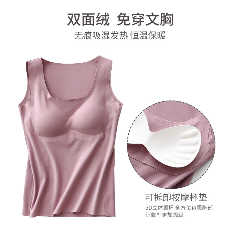 保暖背心女士秋冬内穿发热紧身加绒加厚德绒无痕磨毛吊带打底上衣