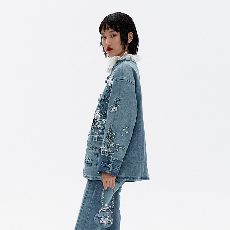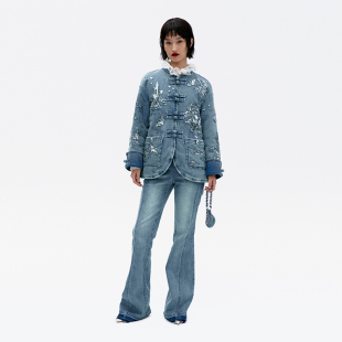 lefame拉飞姆冬季 亭台楼阁牛仔羽绒服外套女 中式