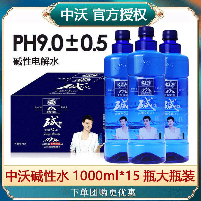 中沃王屋岩泉碱性天然苏打水1000ml 15大瓶整箱ph9.0苏打水饮用水