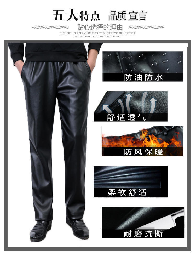 宽松直筒骑行皮裤 加绒加厚保暖防风防水松紧腰男士 子 男秋冬季 皮裤