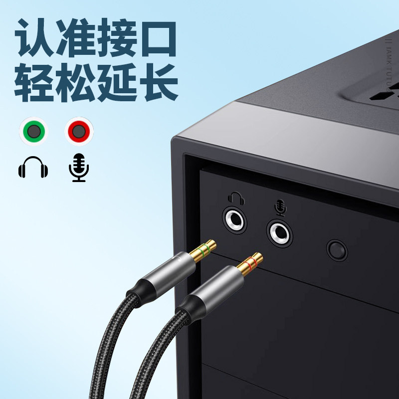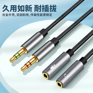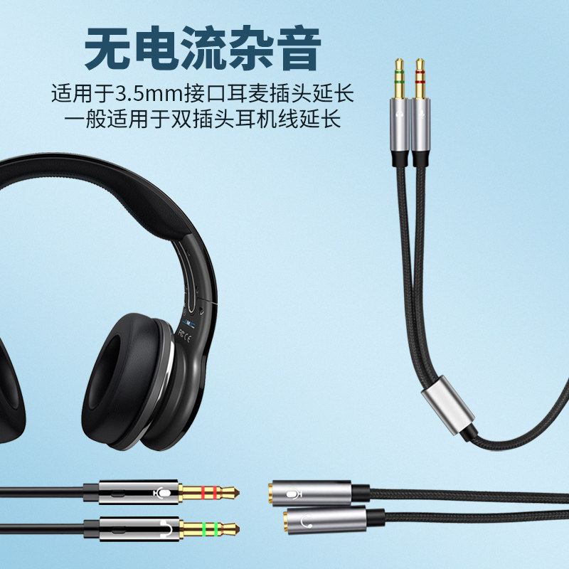双圆口3.5头戴式 电脑耳机延长线麦克风转接线AUX插头笔记本音响音频线话筒K歌3芯录歌双孔3.5mm公对母加长2米