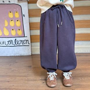 显瘦垂感休闲裤 格雷系加绒黑灰色阔腿慵懒风格 大码 子女秋冬季 子裤