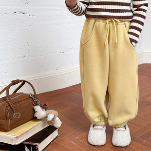 浅色糯米休闲裤 子 女秋冬加绒胖妹妹mm高腰宽松显瘦梨型身材阔腿裤