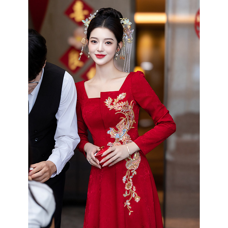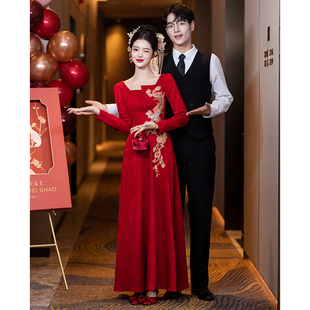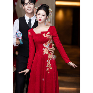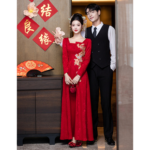 订婚礼服裙轻奢高级感红色衣服结婚回门便装 新娘敬酒服秋冬季 长袖