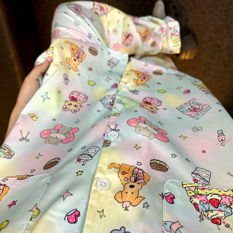 睡衣夏天卡通家居服夏款 长裤 涂鸦甜品乐园冰丝短袖 侘町2025年新款