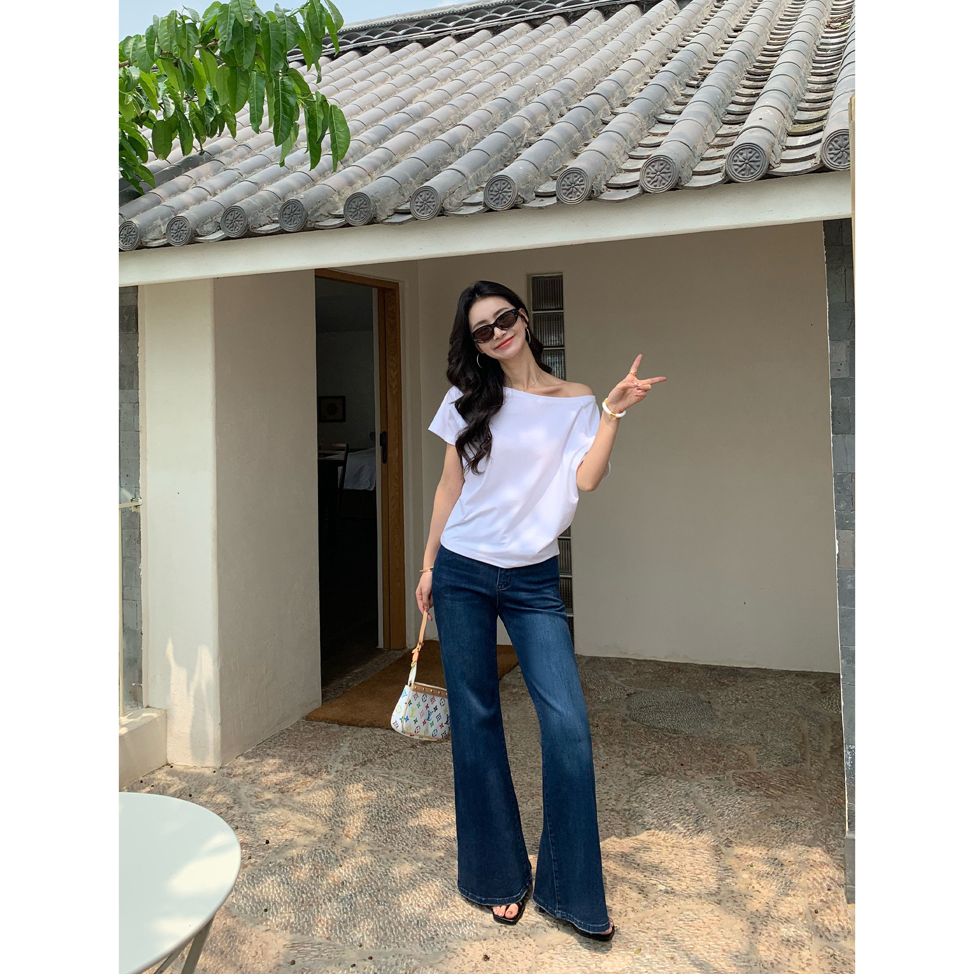 t恤女一字肩斜领露肩气质设计感上衣 两穿短袖 pusumede 随性自在