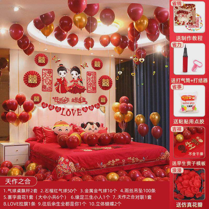 婚房布置套装 饰房间婚庆卧室结婚用品大全女方 气球婚礼新房男方装