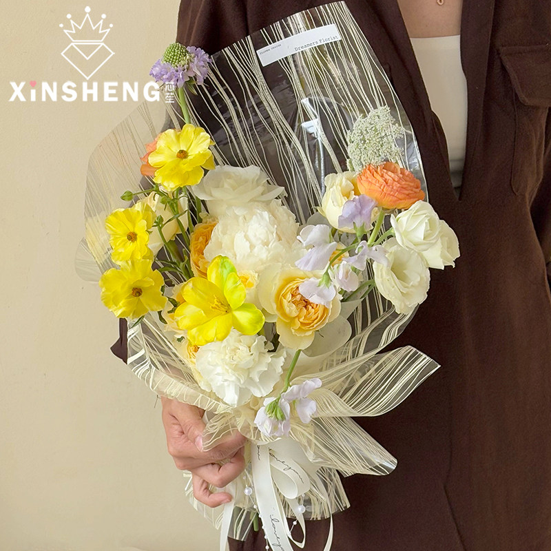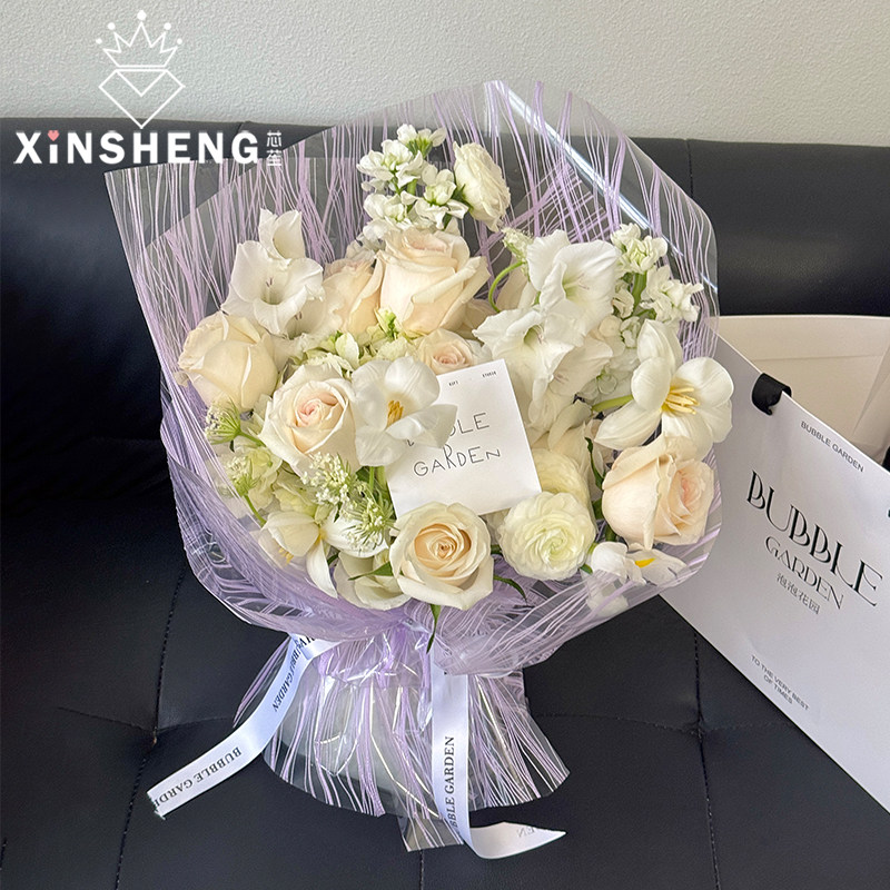 芯苼 纸手工diy花艺资材 水晶LULU网透明光泽层次感花店鲜花束包装