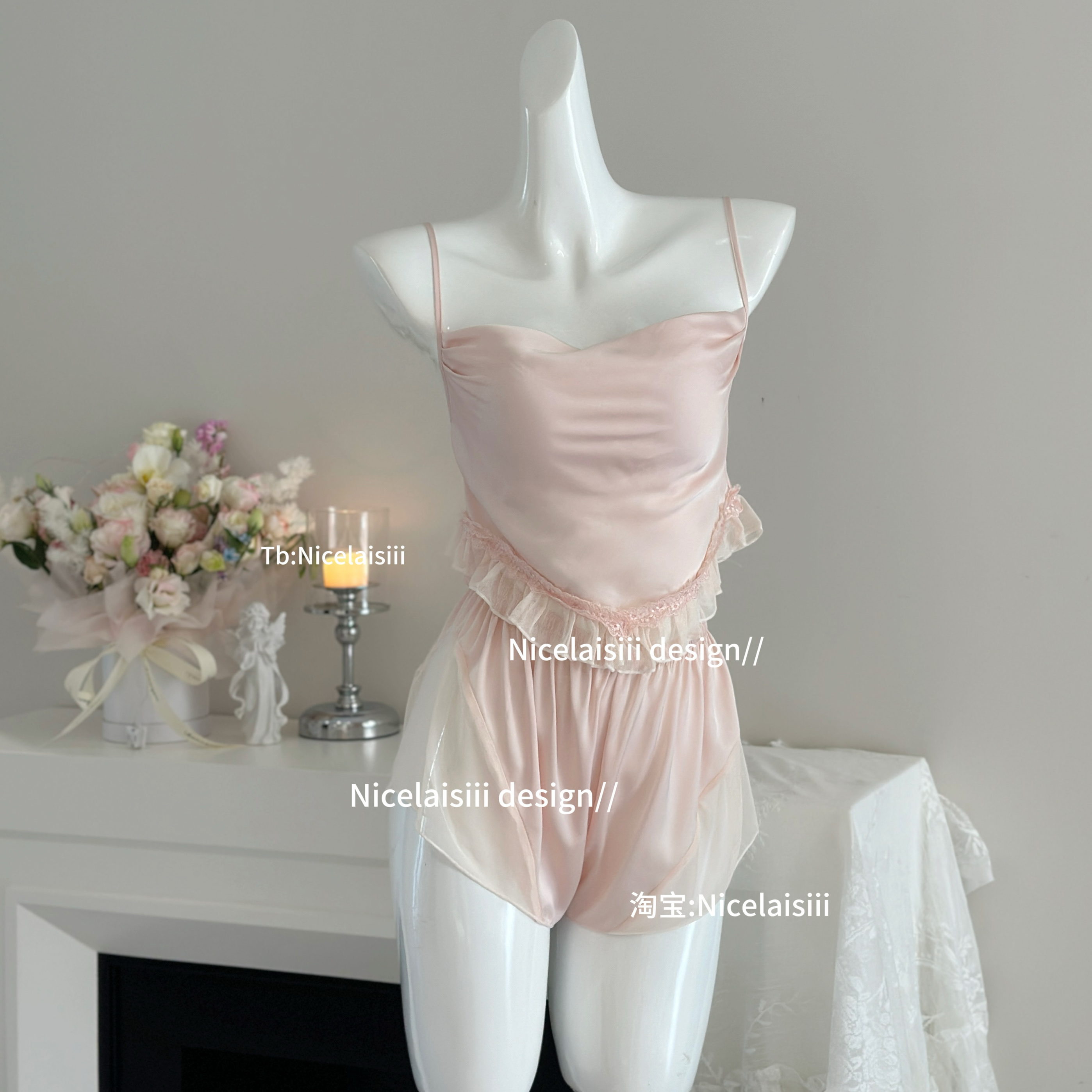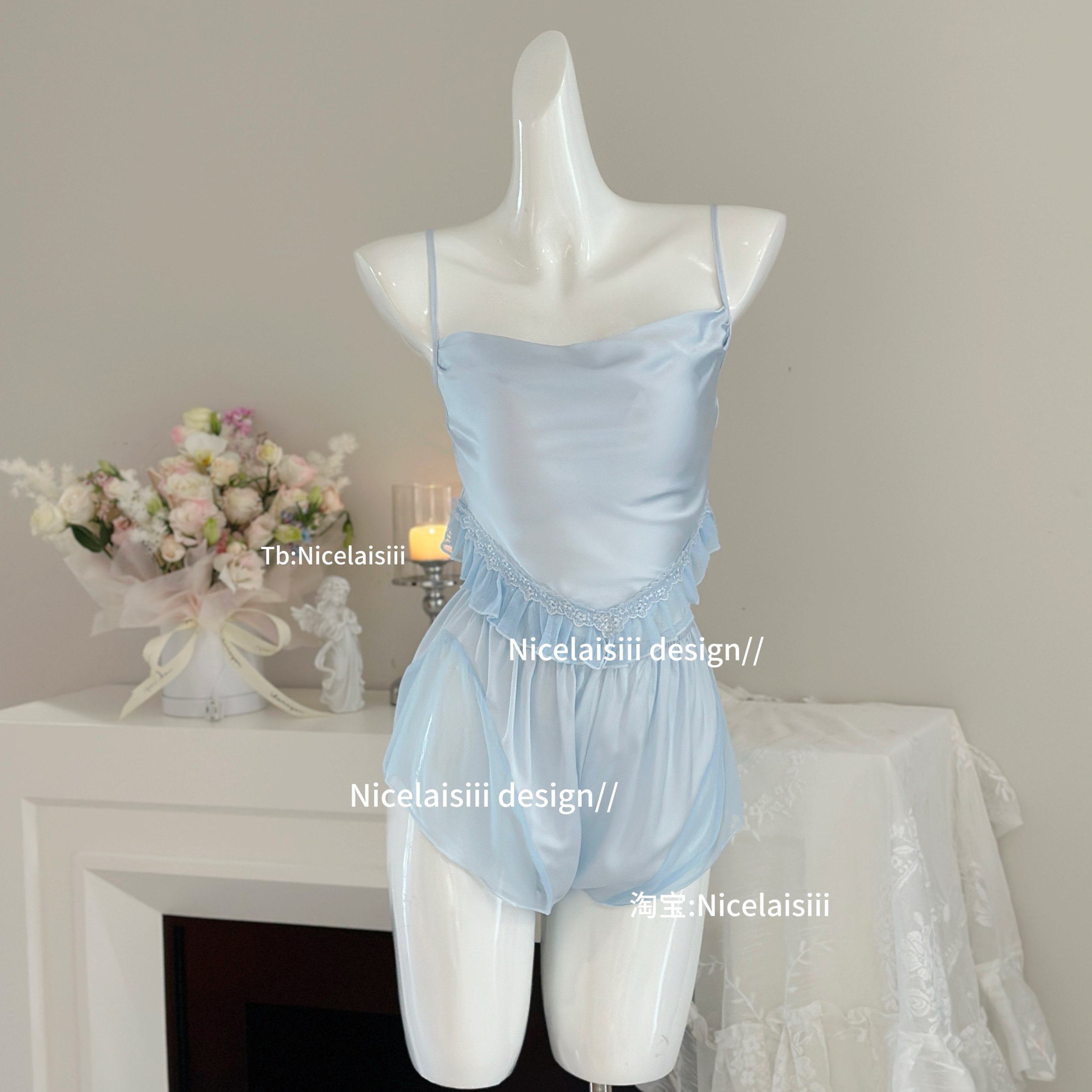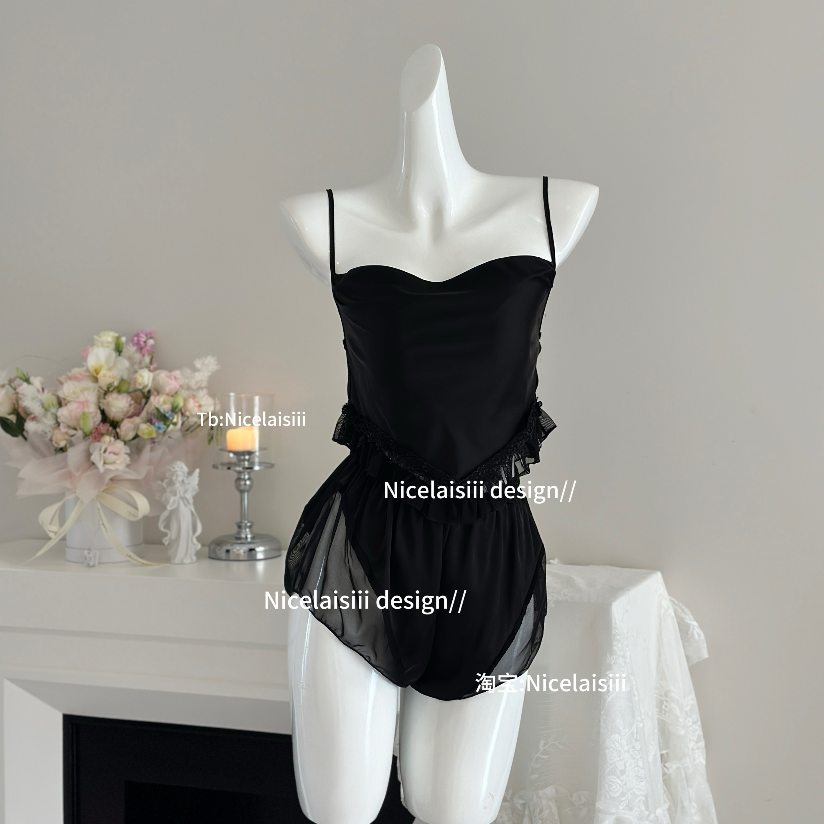 可外穿家居服女套装 贝妍春秋季 子阔腿裤 斜肩上衣慵懒风格 睡衣女款