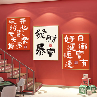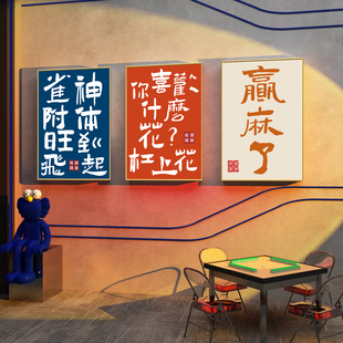 国潮麻将馆墙面装 饰画麻雀房创意文字贴纸包间墙壁海报棋牌室挂画