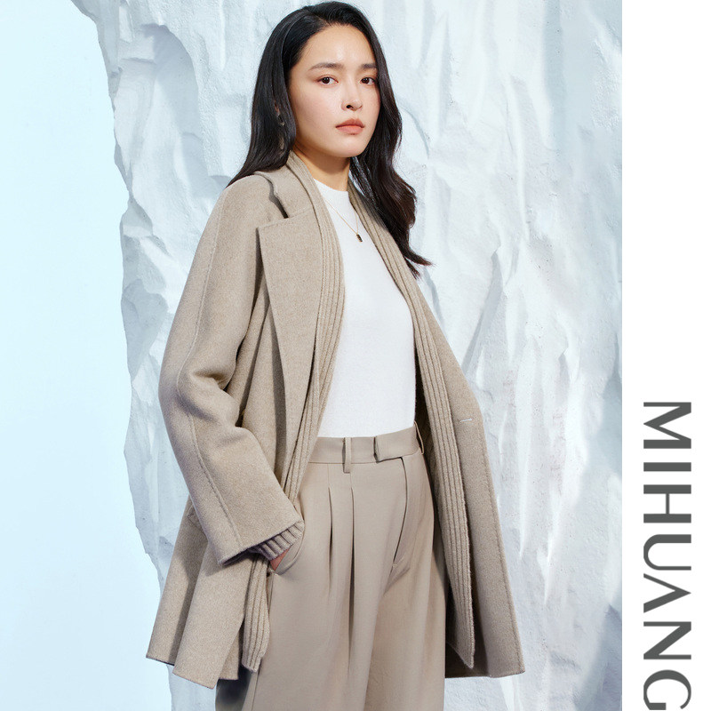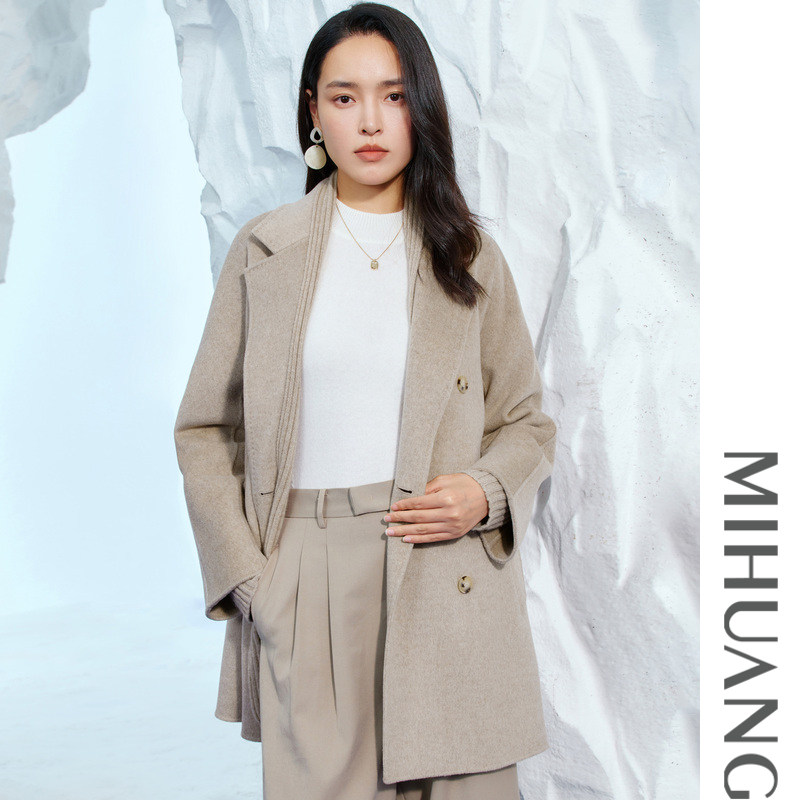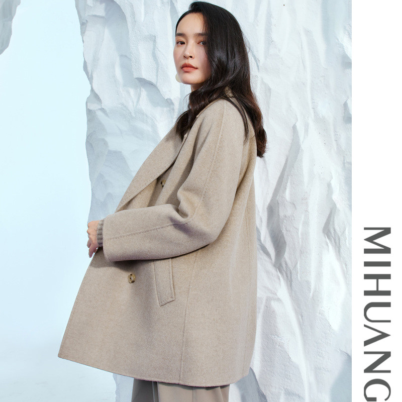 西装 过膝双面羊绒外套 领毛呢子风衣 中长款 纯羊毛双面呢大衣男士