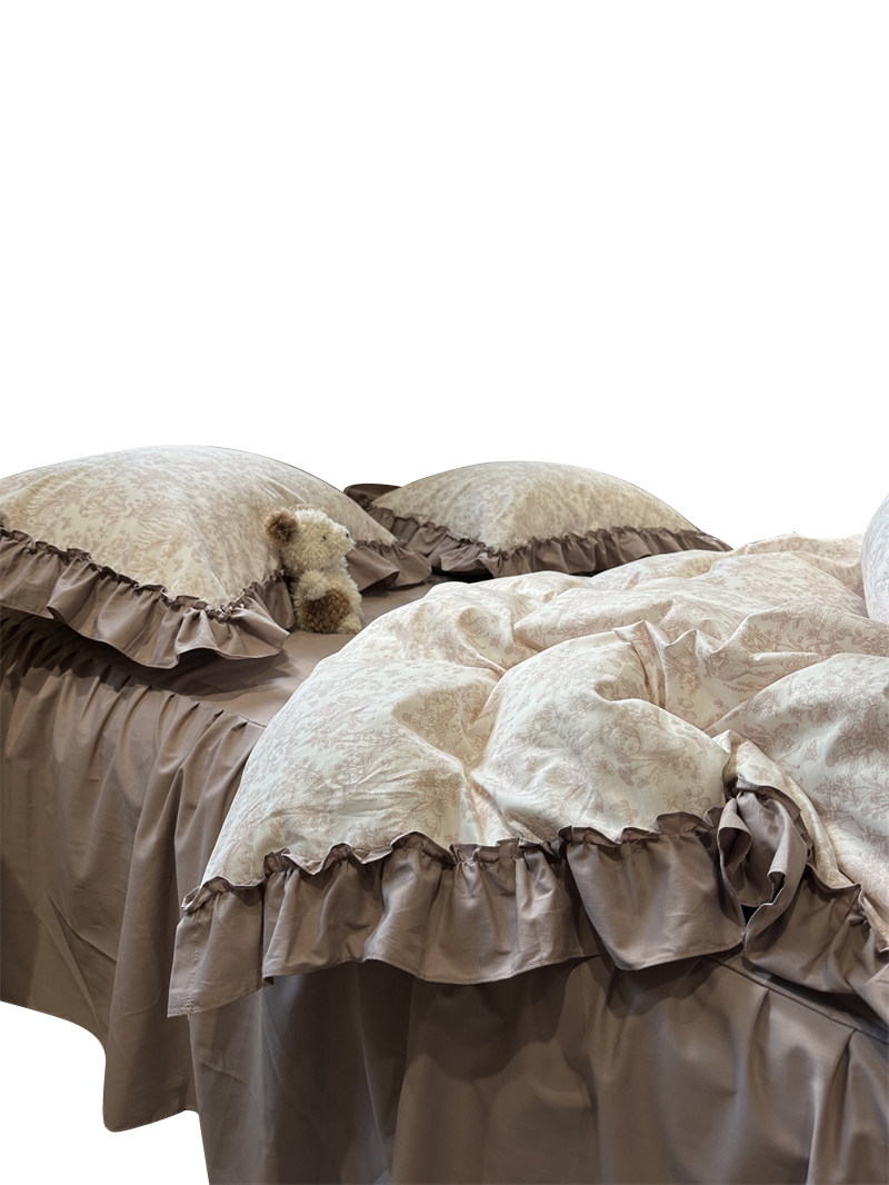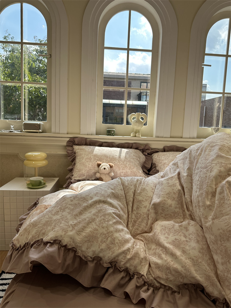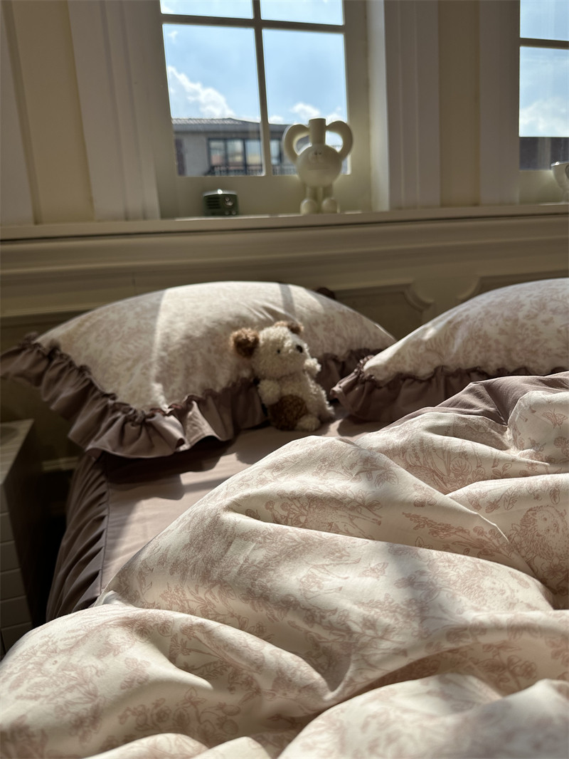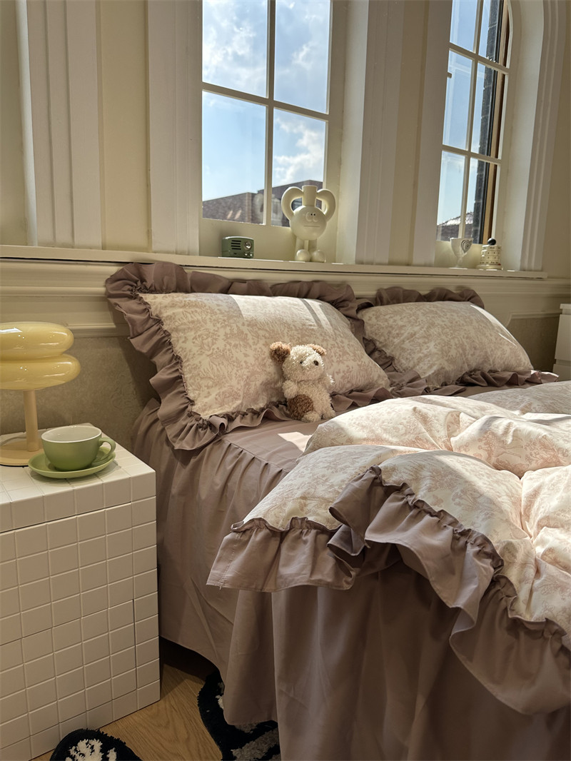 四件套1.5m1.8米少女心韩式 ins法式 复古豆沙色小碎花荷叶边床裙款