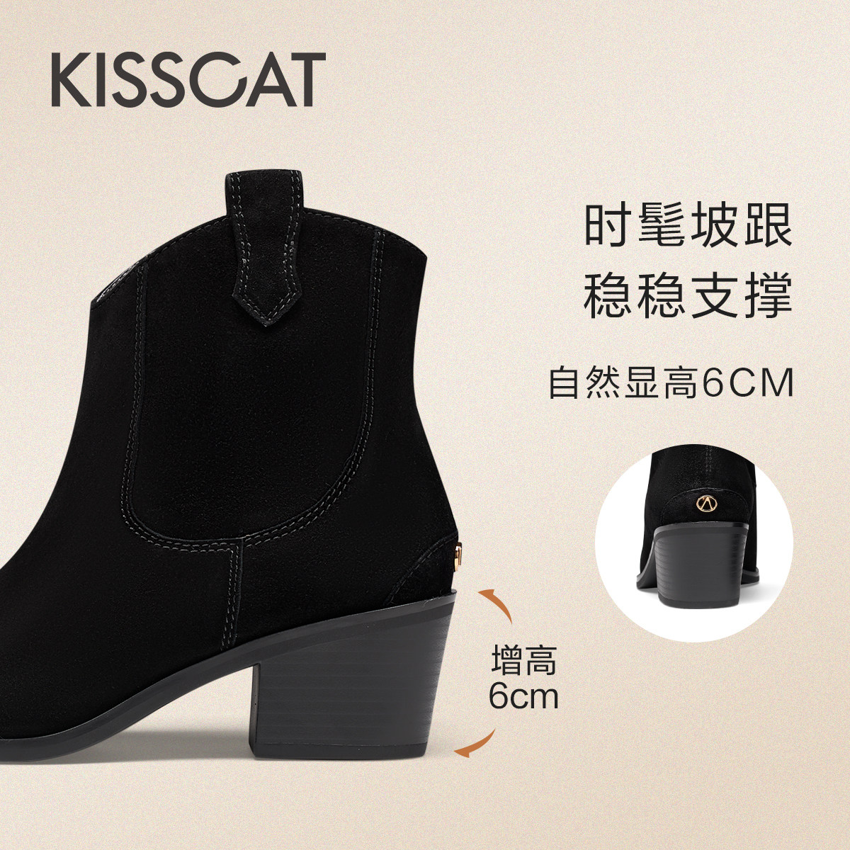 美拉德复古粗跟堆堆西部牛仔靴 新款 真皮 内增高短靴女2025年秋季