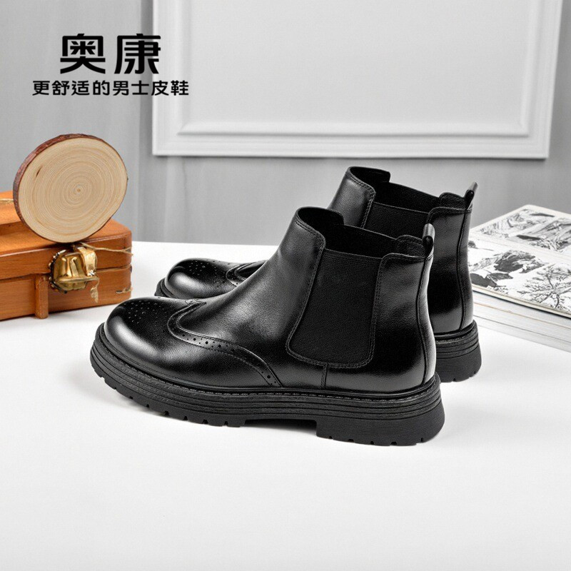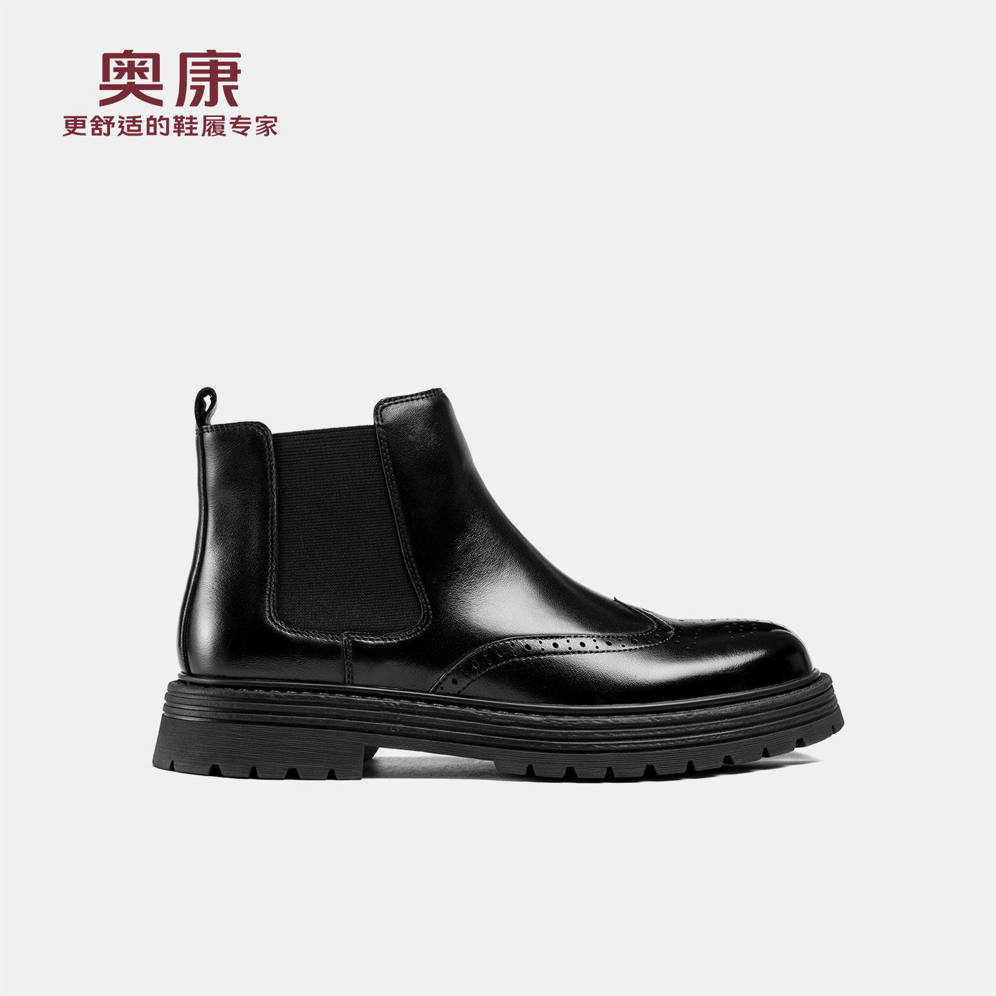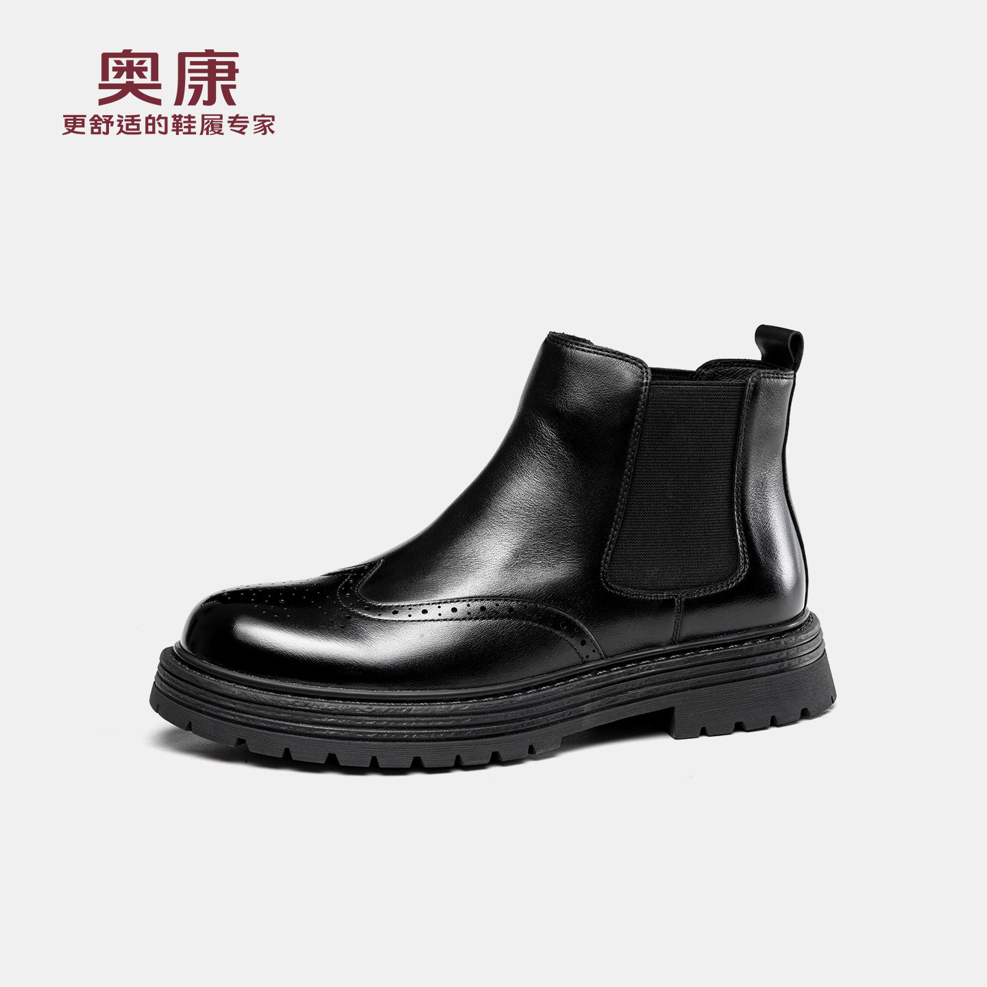 百丽切尔西靴女靴冬季 保暖英伦风厚底短靴加绒烟筒靴子X2G2DDD3