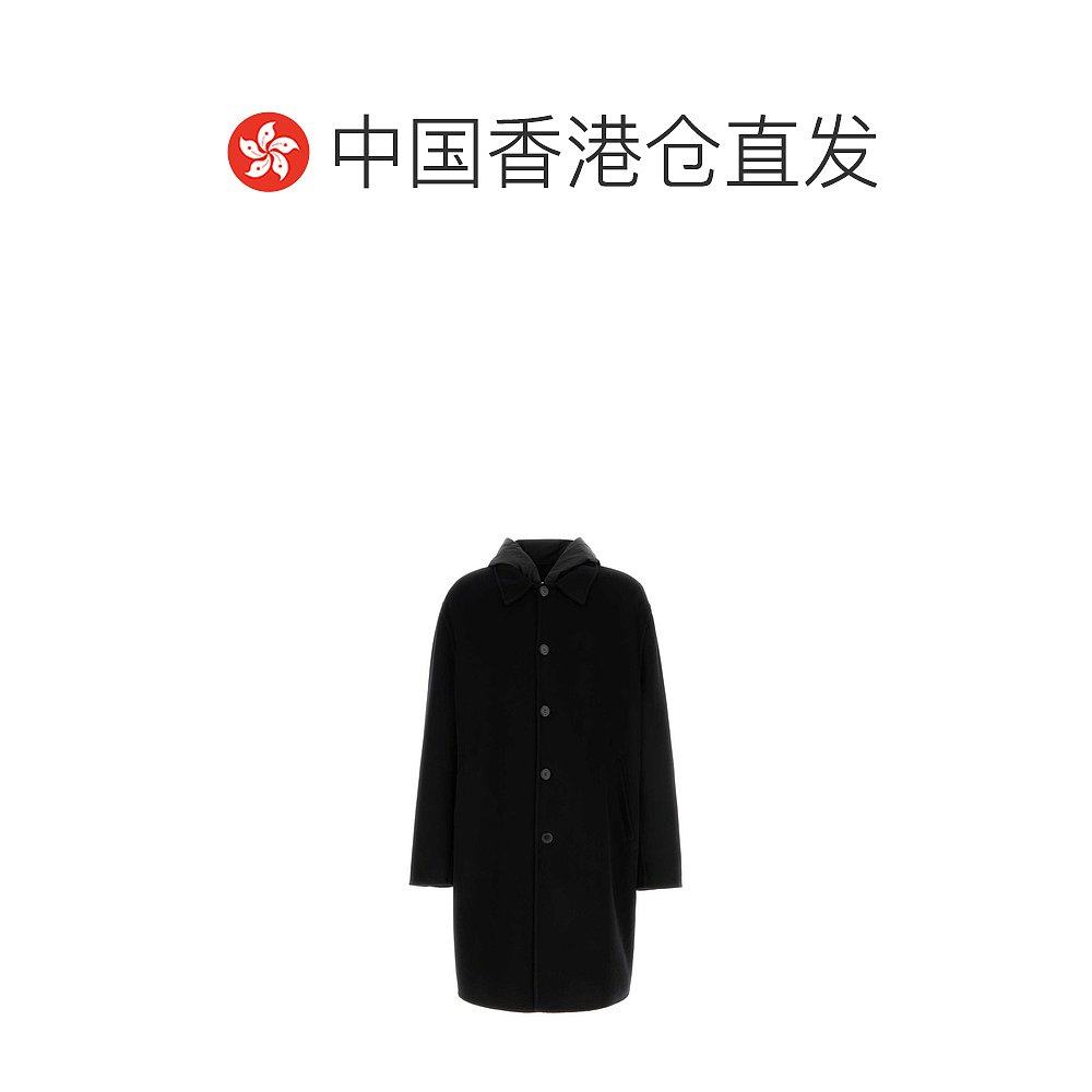韩版 长款 呢子加厚风衣外套 2025春秋季 V37黑色高级感毛呢大衣男款