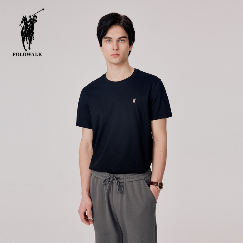 百搭舒适短袖 POLOWALK夏季 简约时尚 男式 圆V领T恤AF4W42282621 新品