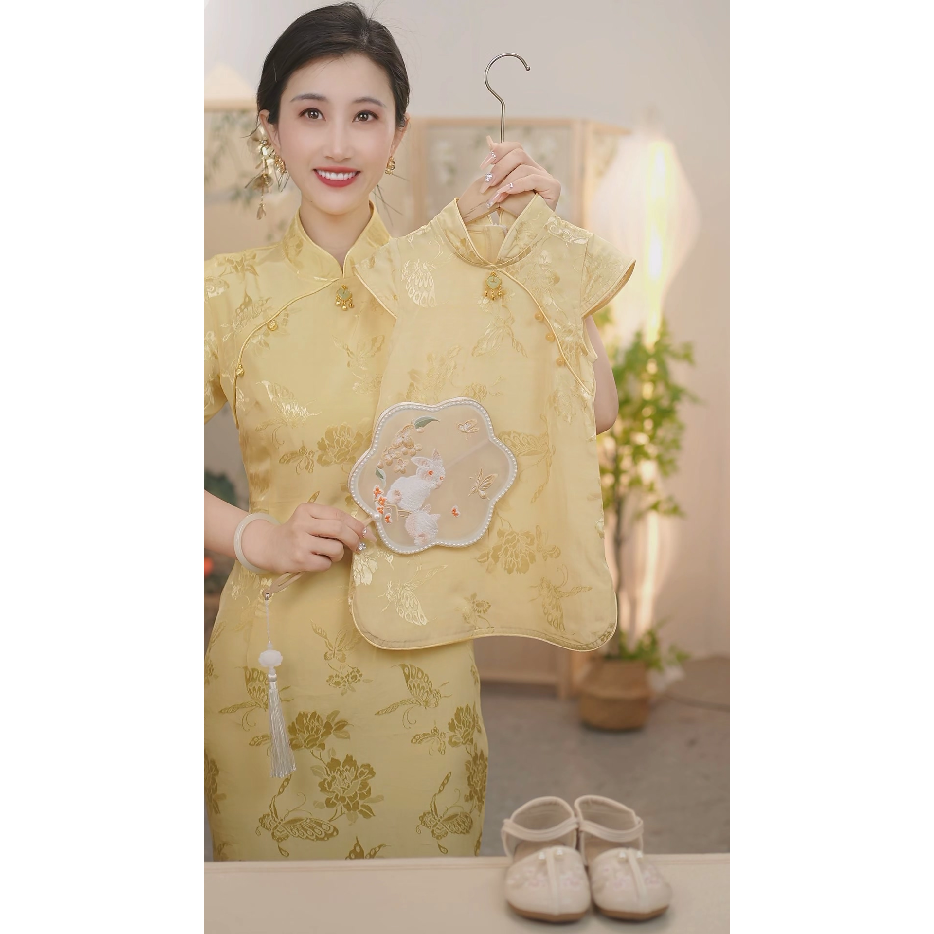 人丝面料 金色年华 SC062新中式 夏季 现货 2025旗袍裙夏款 亲子
