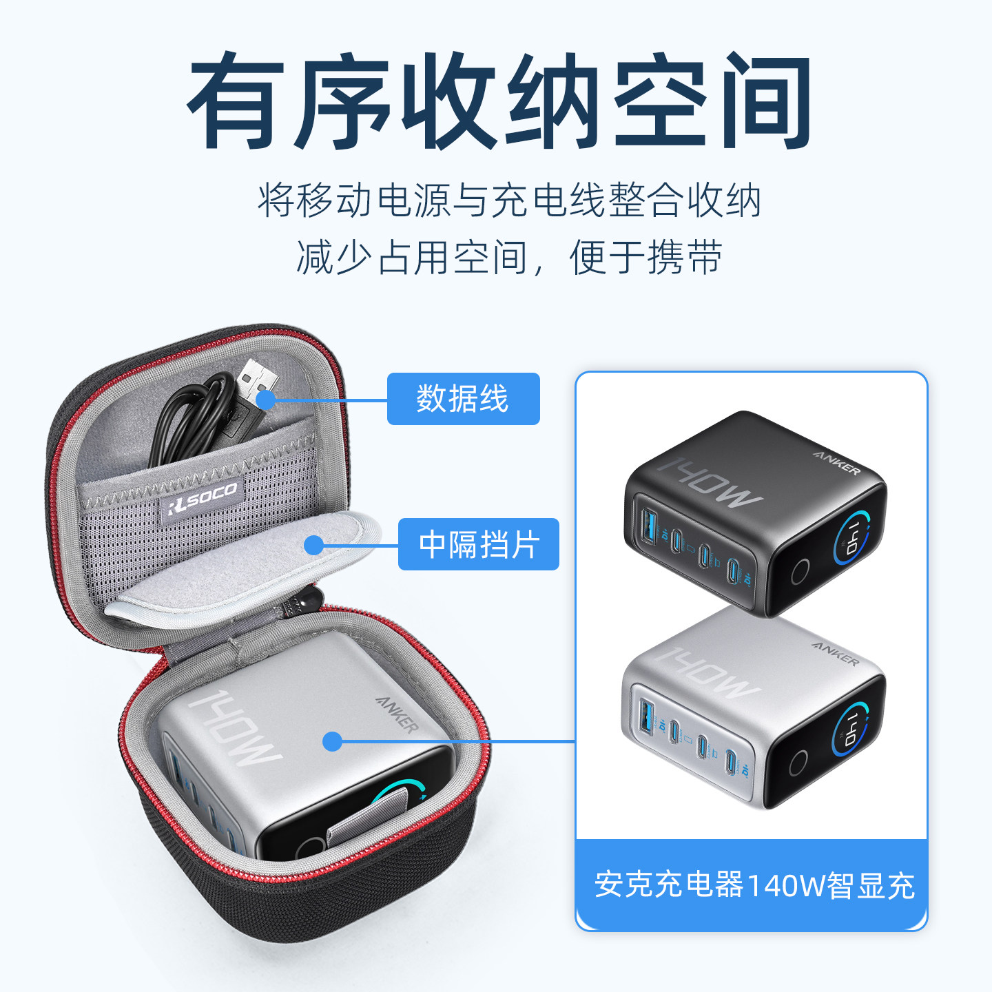 适用Anker安克140W充电器收纳包AI屏显氮化镓保护套防水抗摔便携