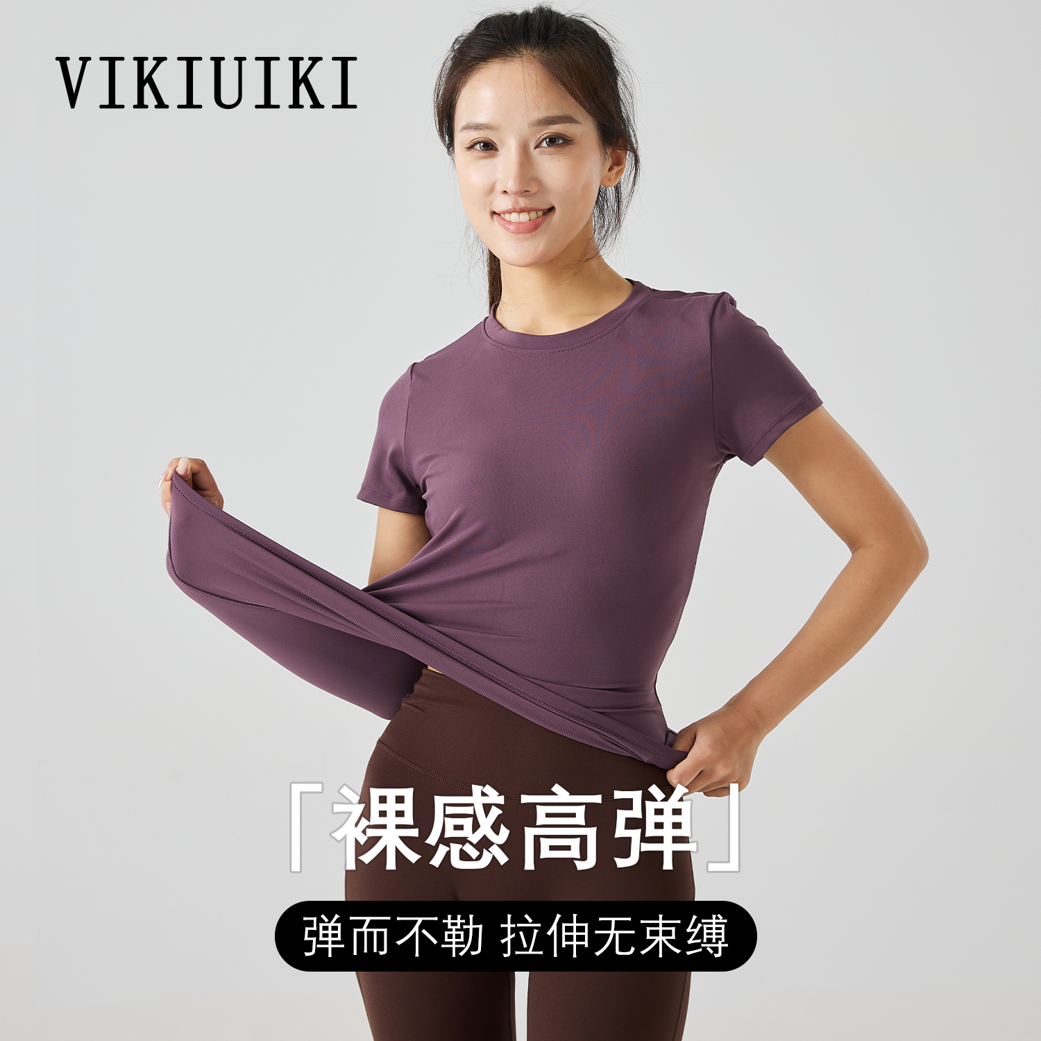 健身女孩圆领弹力瑜伽服短袖 显瘦运动上衣 透气速干跑步T恤夏修身