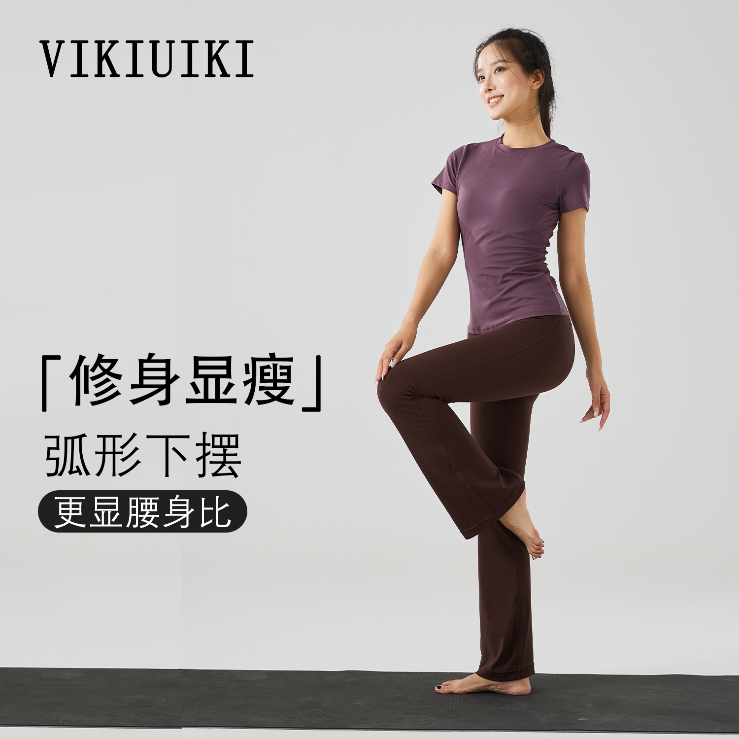 奔跑吧卡卡紫色设计感中长款 显瘦瑜伽服上衣运动健身 开叉T恤长袖
