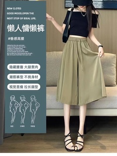 裙女夏季 宽松休闲a字裙阔腿裤 薄款 显瘦遮肉七分裤 大码 冰丝阔腿裤