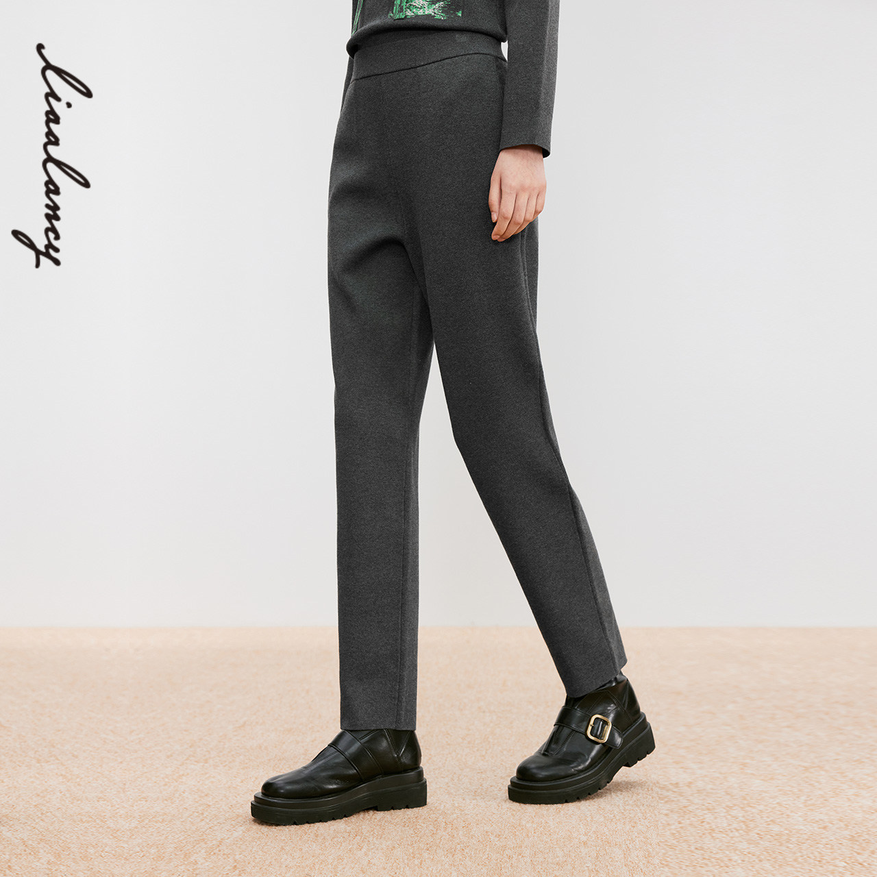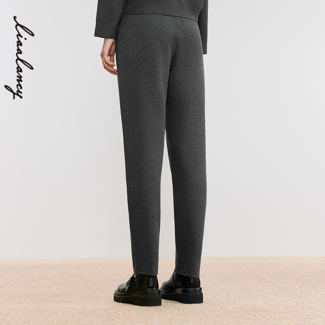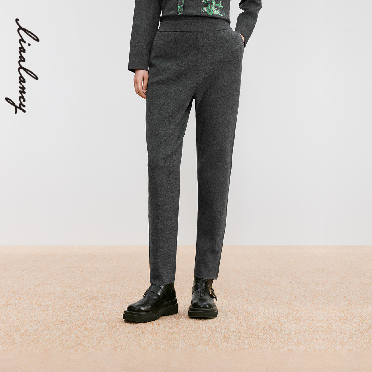 朗姿2024冬新款 长裤 灰色高腰显瘦针织裤 小脚裤 子女简约时尚 LANCY