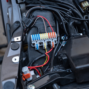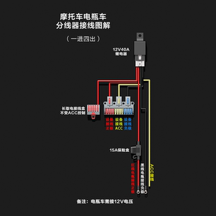 摩托车分线器电瓶踏板车GPS射灯usb快速接线12V防亏电acc一进四出