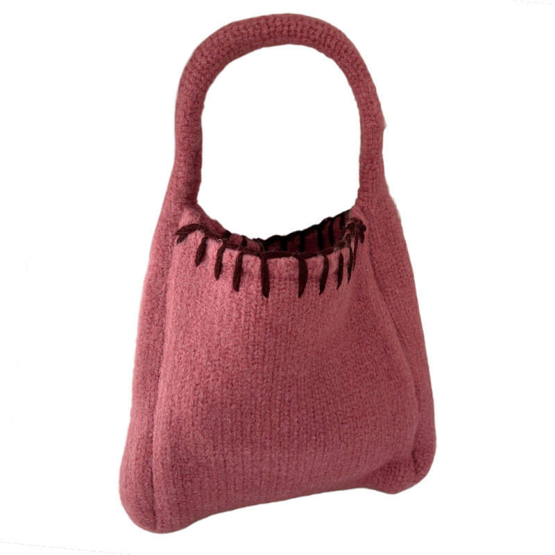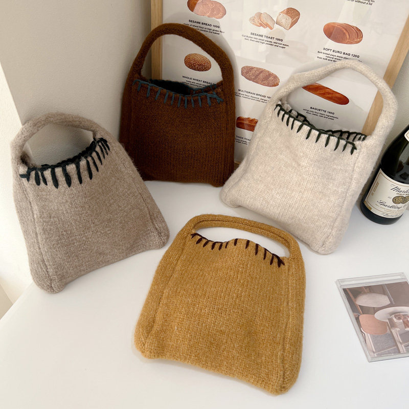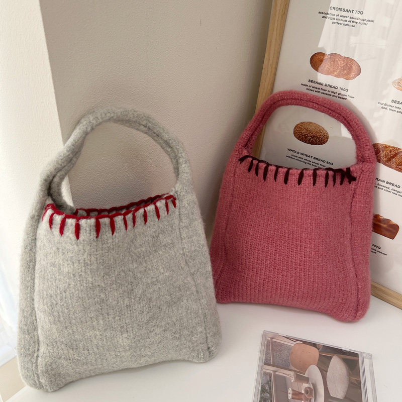 红色时尚 小单肩包韩国ins针织毛线手提包秋冬复古手腕包零钱收纳