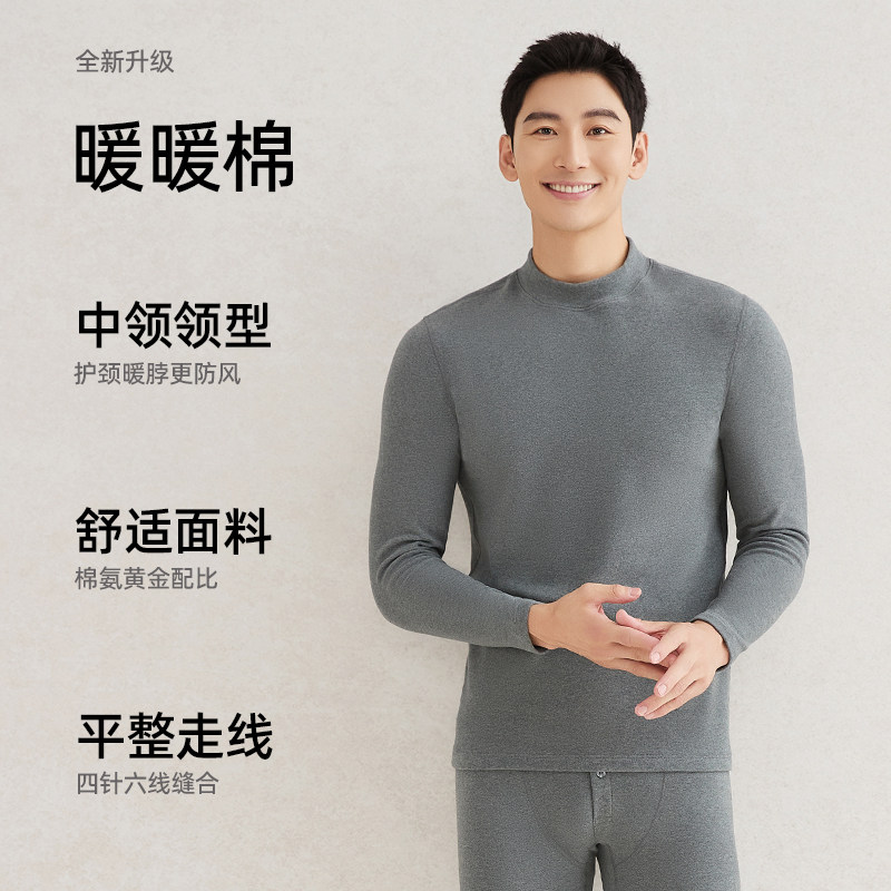 兄华男士 秋衣中老年男上衣 保暖内衣纯棉加厚不加绒中领打底衫
