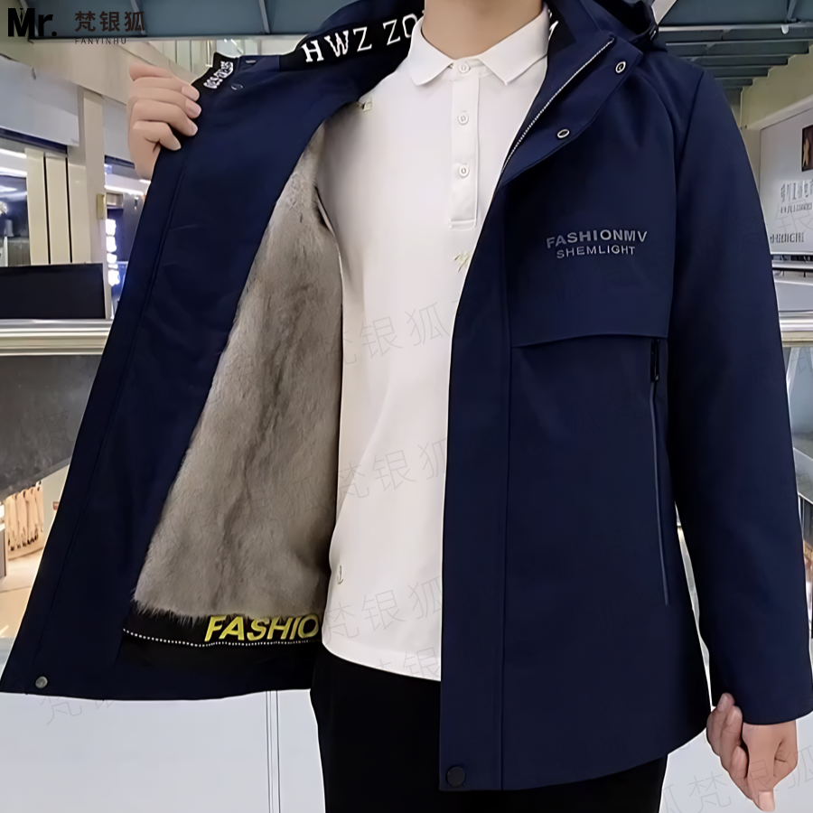 皮毛一体外套保暖加厚 真毛真貂内胆可拆卸2025新款 男士 派克服冬季