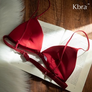 本命年红色法式 美背细肩带性感前扣文胸罩 三角杯内衣女无钢圈薄款