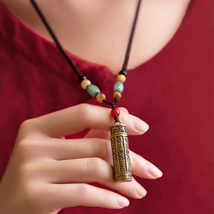 纯黄铜护身吊坠男女项链挂件随身转运招财饰品龙嘎乌盒空心可打开