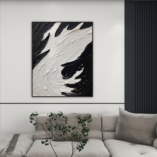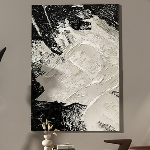 高级感大气客厅手绘油画丙烯立体手工玄关挂画黑白抽象侘寂风挂画