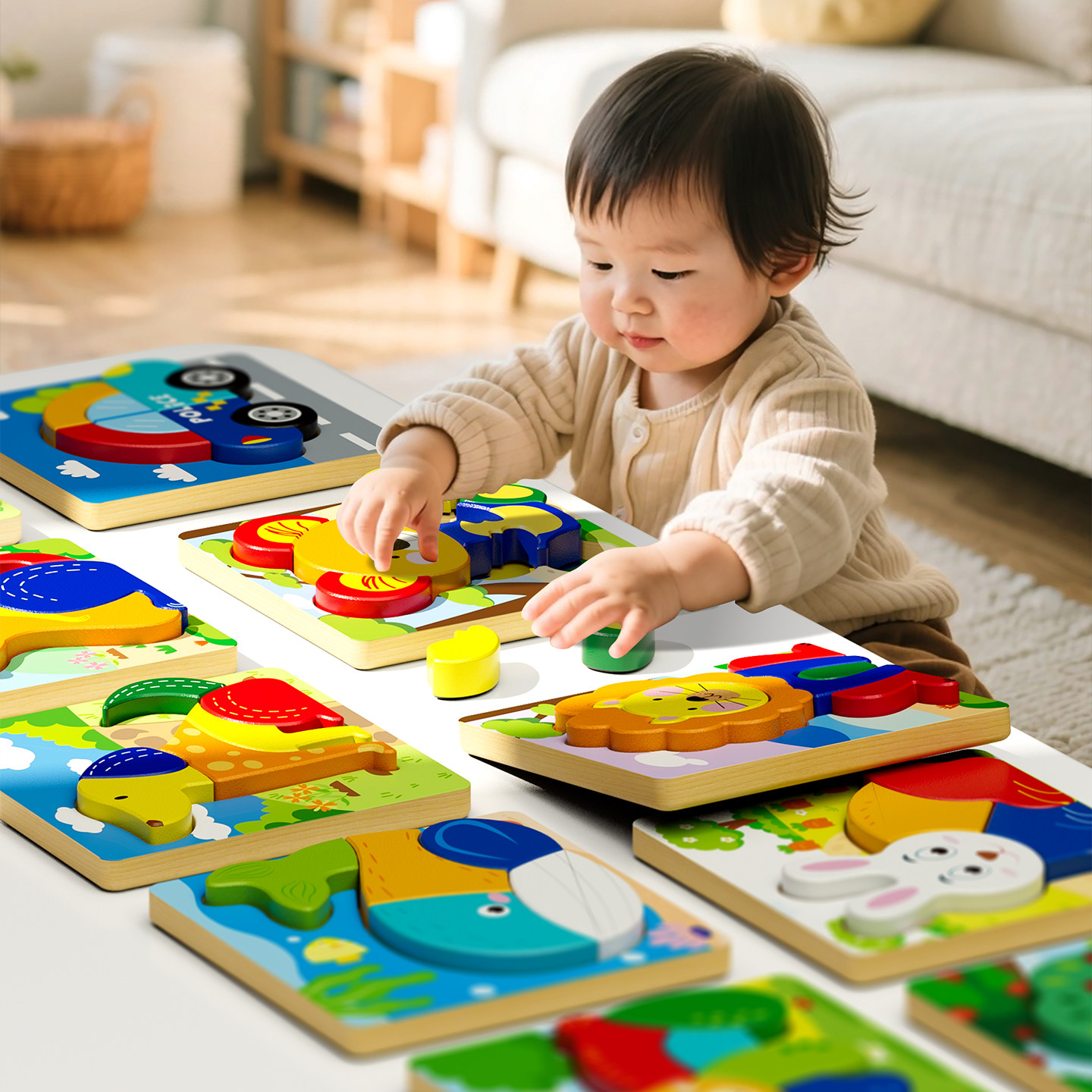 幼儿童益智拼图2岁宝宝1岁半到3动物平图0男孩女早教积木木质玩具