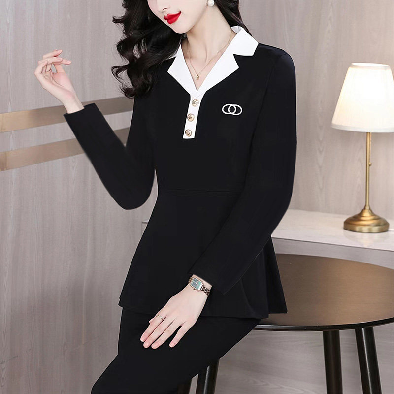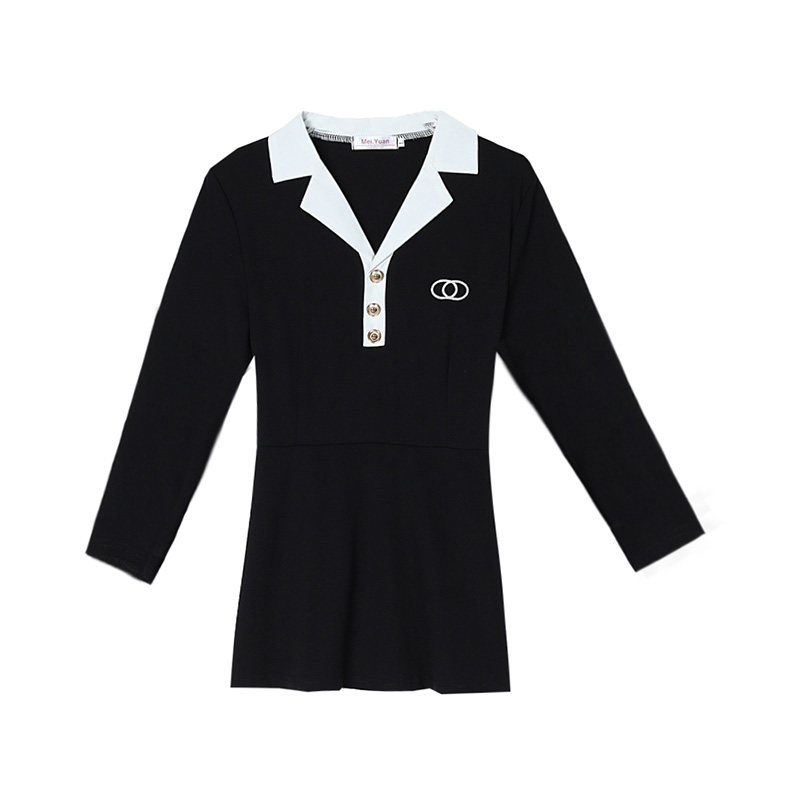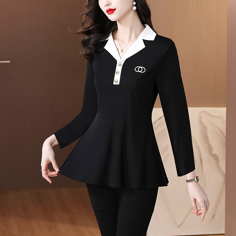 洋气妈妈上衣遮肚显瘦小衫 女2026春秋新款 女 打底衫 黑白撞色中长款