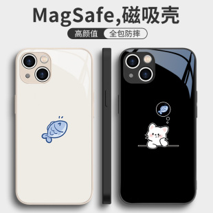 适用苹果17 14p猫咪12pro创意11小鱼小米 16pro手机壳magsafe磁吸华为mate70pro简约15promax情侣iphone13pro