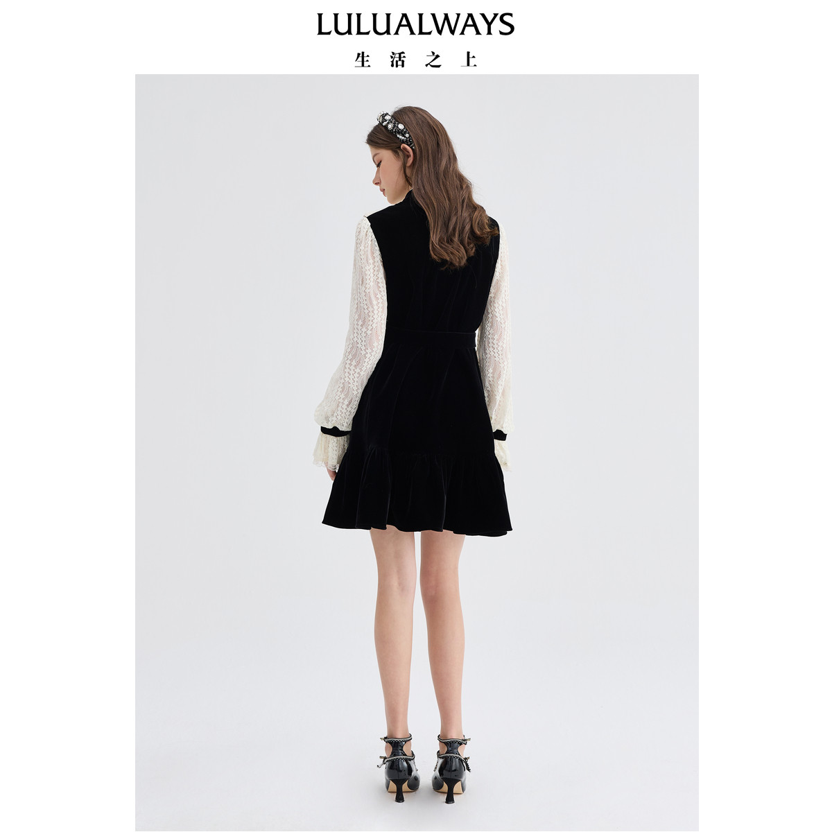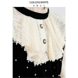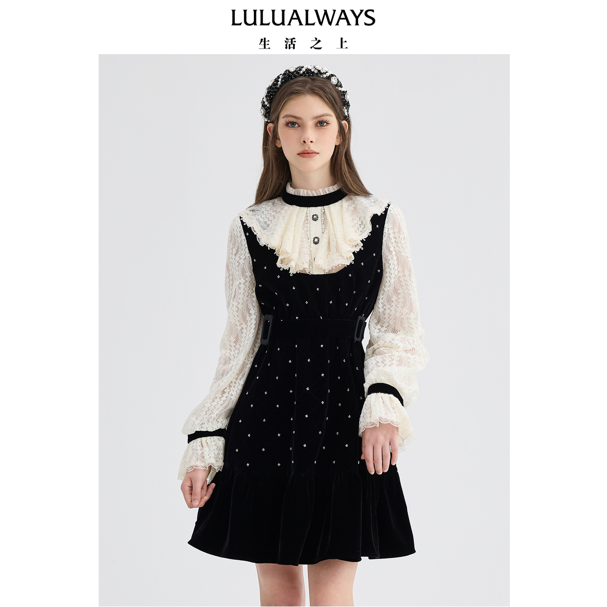 气质优雅重工收腰平绒长袖 LULUALWAYS 新款 冬季 裙子女 商场同款