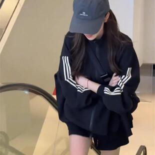 上衣 宽松休闲卫衣开衫 高级感三道杠欧货棒球服外套女2025秋季 新款