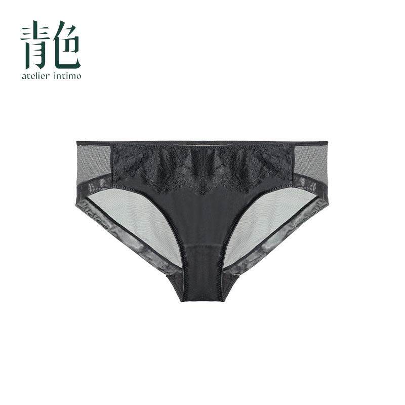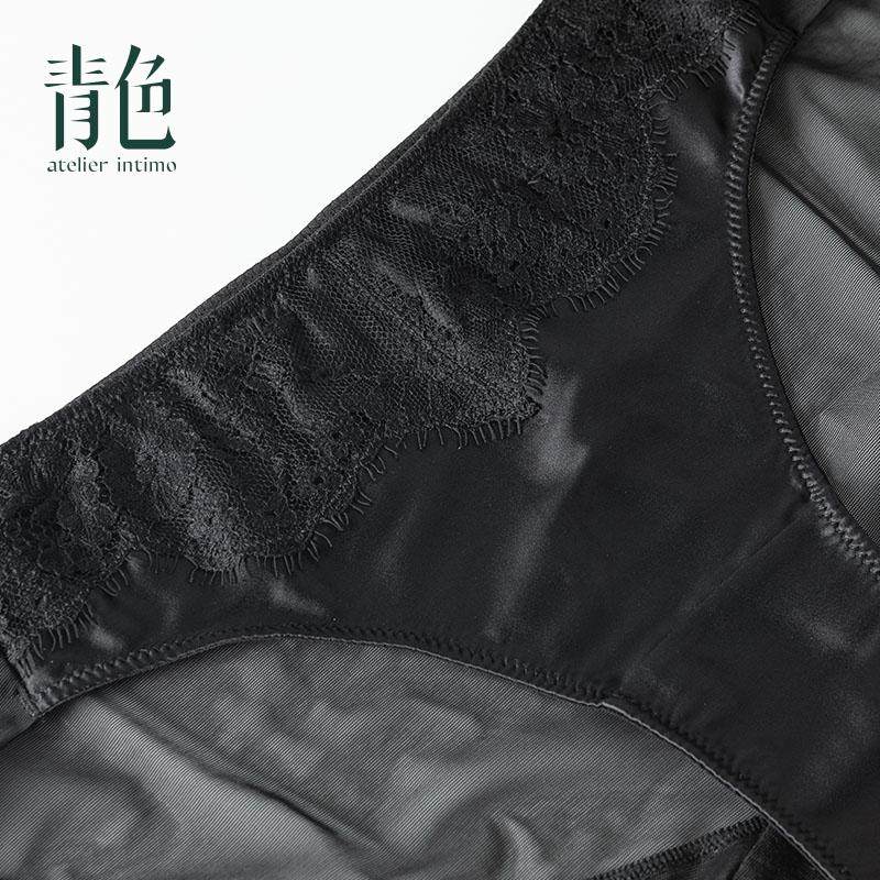 女 青色性感蕾丝抗菌速干无痕里档纯棉内裤 空桑低腰三角裤