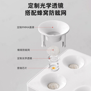 禾品护眼超薄明装 斗胆灯客厅无主灯卧室四头方形射灯智能防眩筒灯