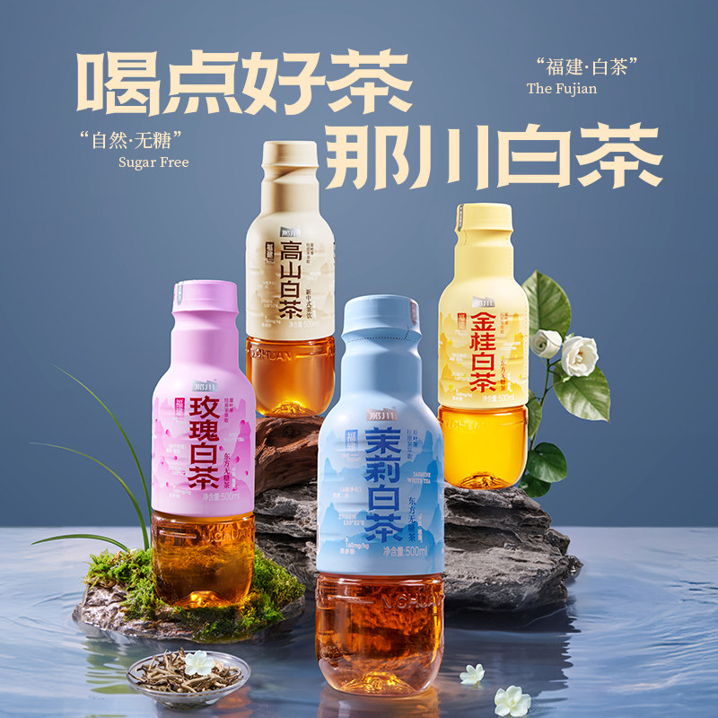 那川 4瓶便携解渴饮品 茉莉玫瑰金桂高山白茶无糖茶纯茶饮料500ml