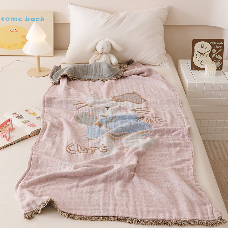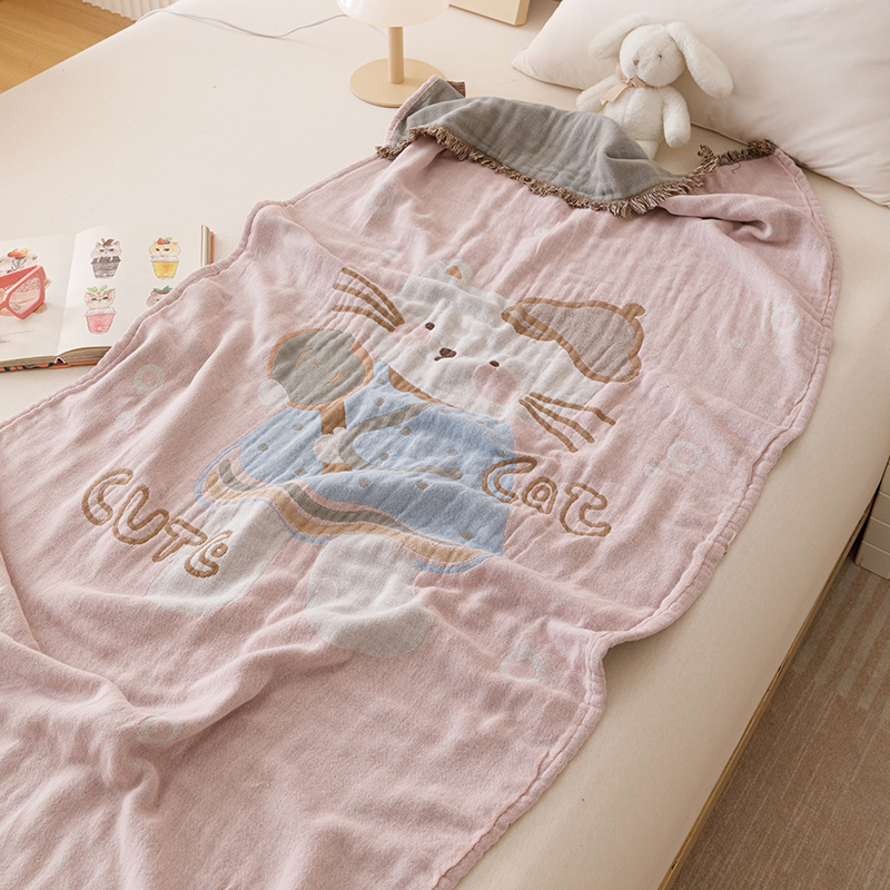 可爱猫咪全棉纱布浴巾披肩旅行小被毯子毛毯浴巾薄款 盖毯加大毛巾