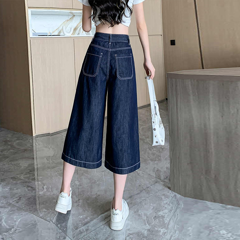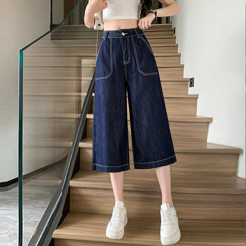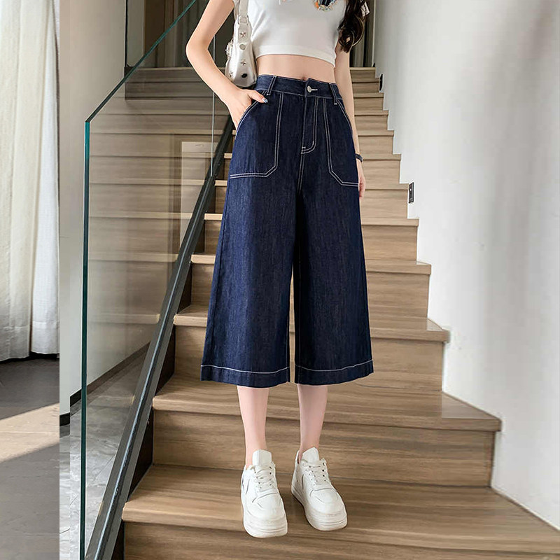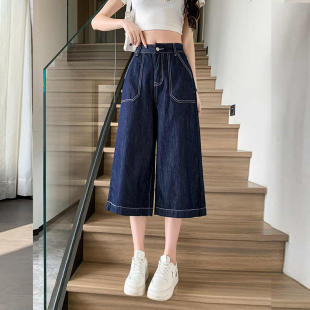 休闲显瘦小个子直筒中裤 新款 女2025年夏季 高腰百搭七分纯色牛仔裤