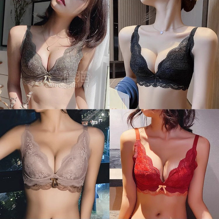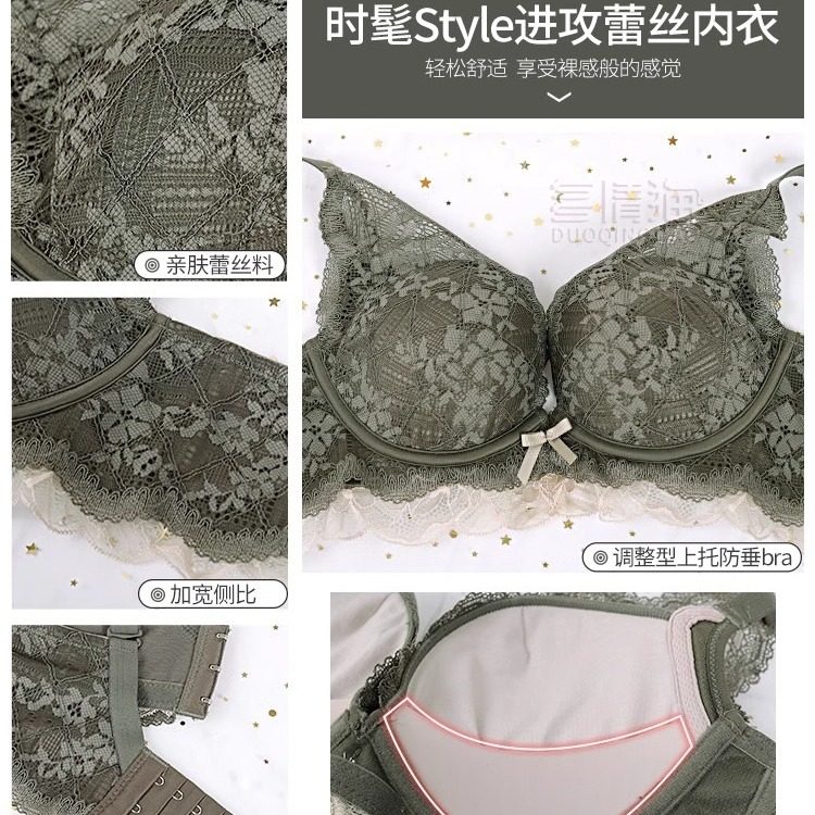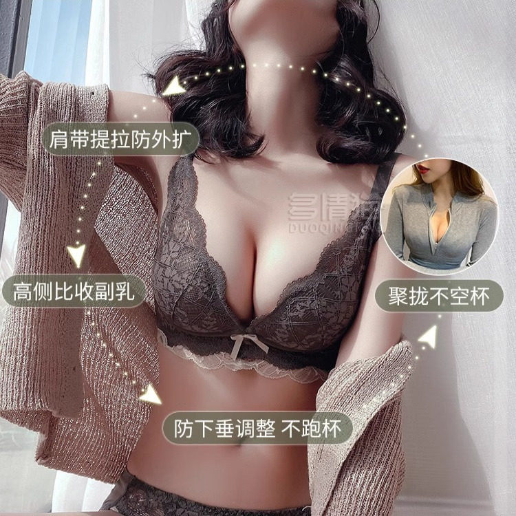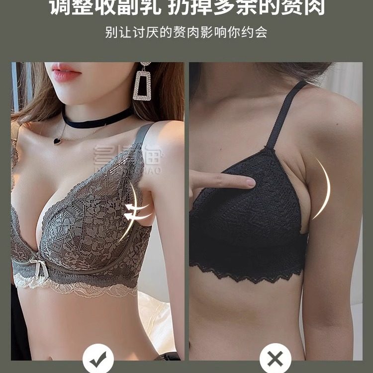 蕾丝性感内衣女小胸平胸聚拢显大无钢圈文胸提拉防下垂收副乳胸罩