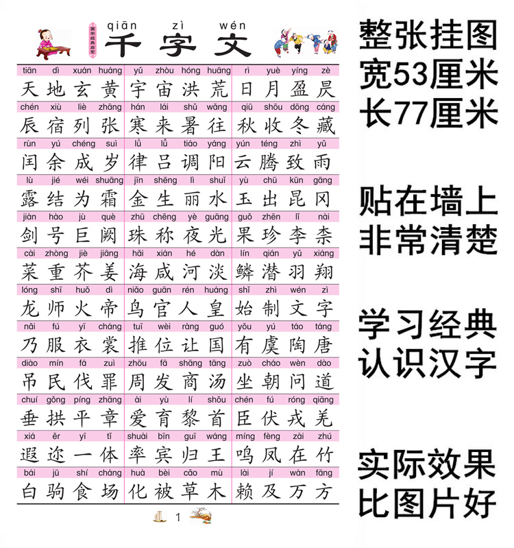 大字注音版 宝宝启蒙孩子挂图 识字认字指读早教拼音学习拼读训练全套墙贴课本同步 千字文识字挂图 正版