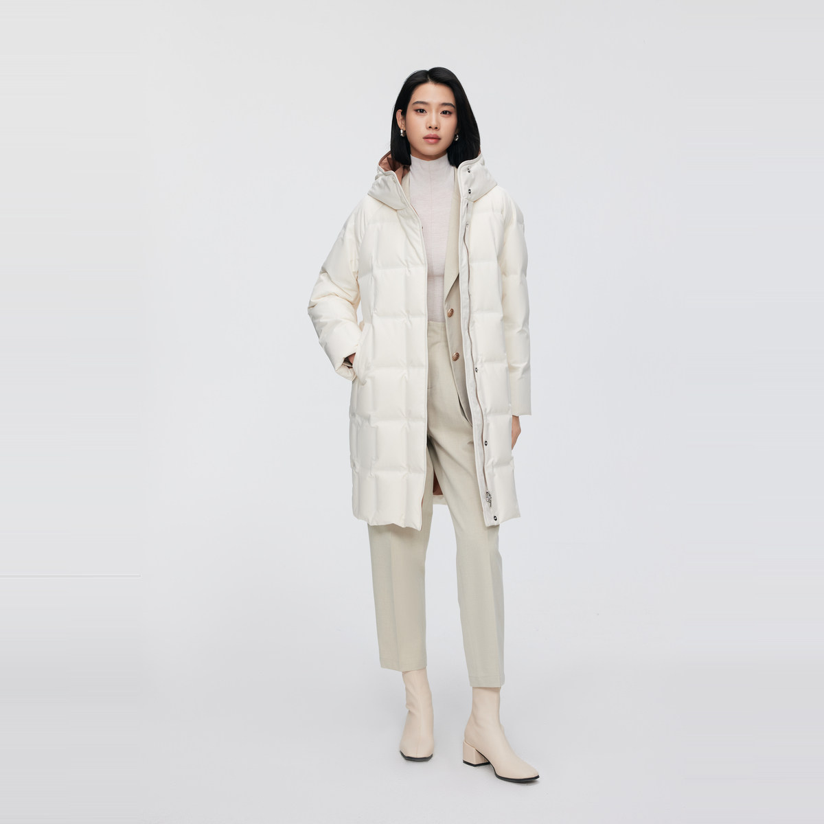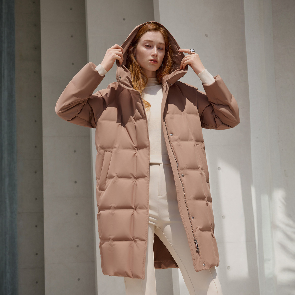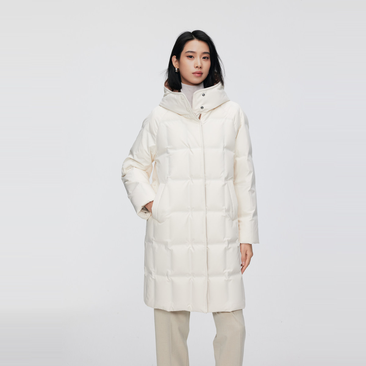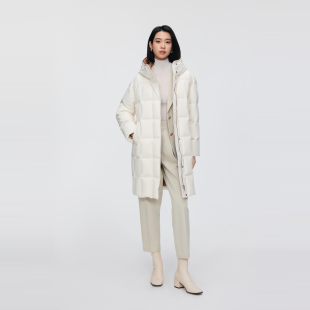 商务通勤厚羽绒服连帽小廓型中长款 波司登冬女经典 美拉德 鹅绒